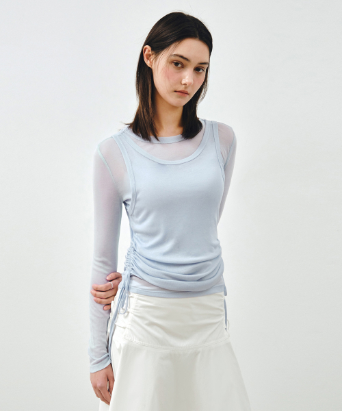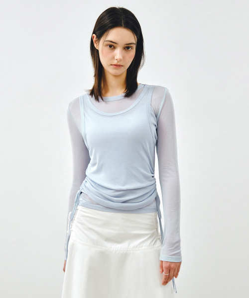 [SET] 사이드 셔링 레이어드 티셔츠 스카이블루 MDTS067SKYBLUE