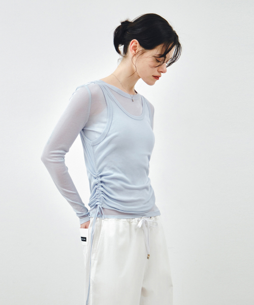 사이드 셔링 메쉬 롱슬리브 아이보리 MDTS061IVORY