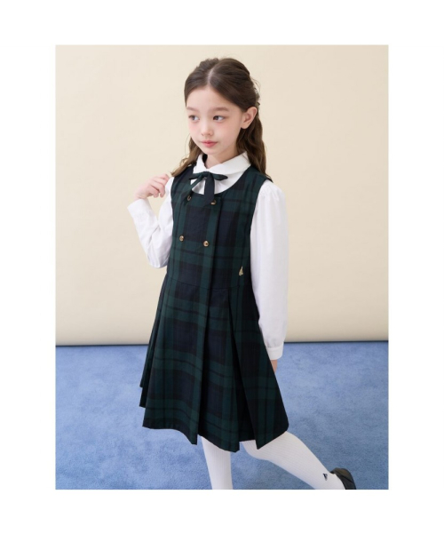 체크 패턴이 포인트인 베스트형 원피스입니다. 엑스(X)자 실루엣과 허리의 벨벳 포인트가 클래식하면서 세련된 분위기를 자아냅니다. 민소매로 계절에 구애받지 않고 이너에 따라 다양한 분위기를 연출할 수 있어 활용도가 높습니다. 단정한 옥스포드 셔츠와 리본 타이 세트(BI6164GE1)를 매치해 완성도 높은 행사룩으로, 반소매 티셔츠와 매치해 편안한 캐주얼룩으로 연출할 수 있습니다. 빈폴키즈는 아이가 안심하고 입을 수 있는 옷을 만들기 위해 원단부터 완제품까지 철저한 '아동 유해성 안전 검사'를 진행하고 있습니다.