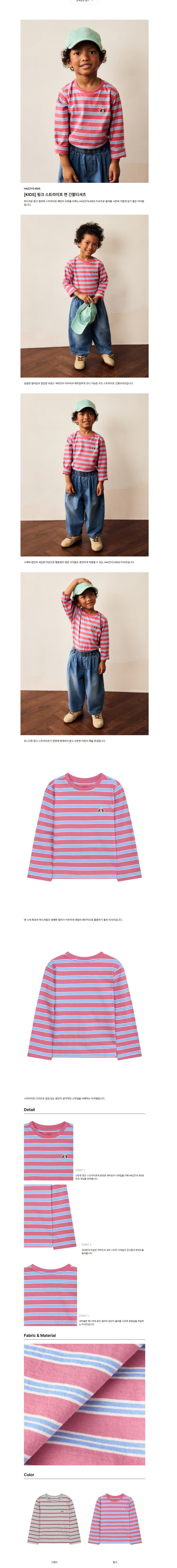 [KIDS] 핑크 스트라이프 면 긴팔티셔츠