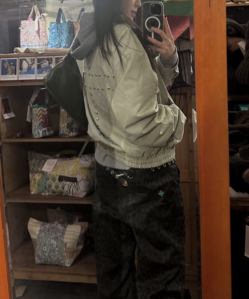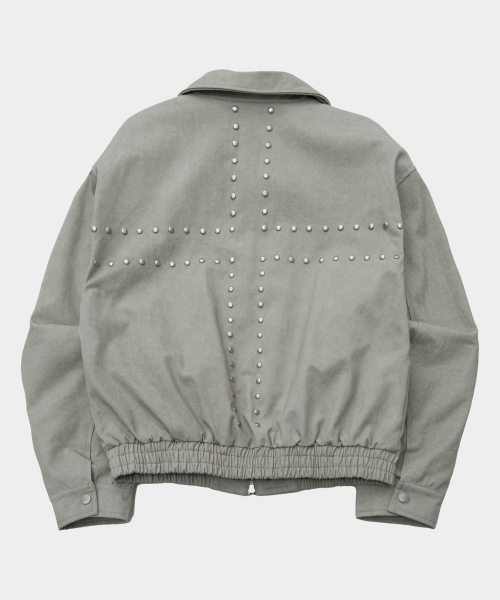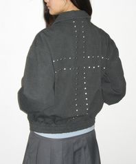 스터드 포인트 인시전 오버핏 블루종 코튼 워크 집업 자켓 [블랙]