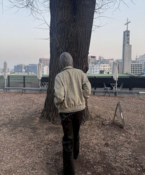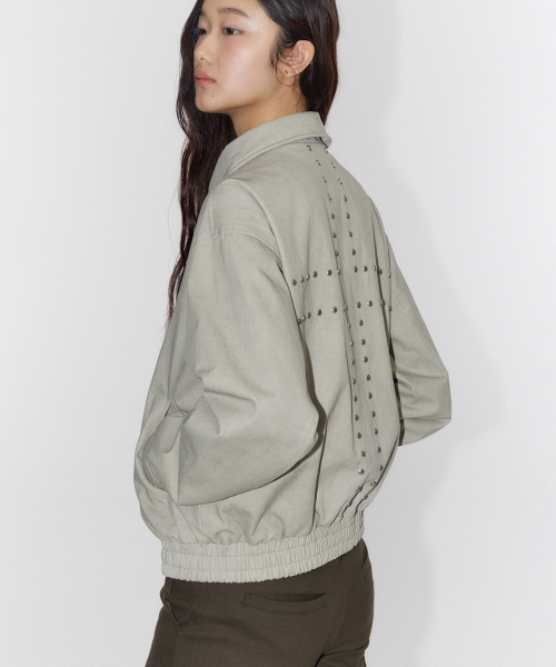 스터드 포인트 인시전 오버핏 블루종 코튼 워크 집업 자켓 [베이지]