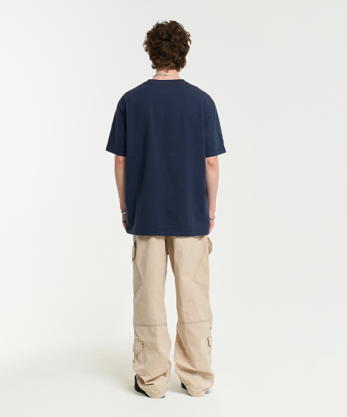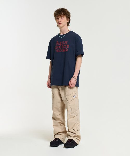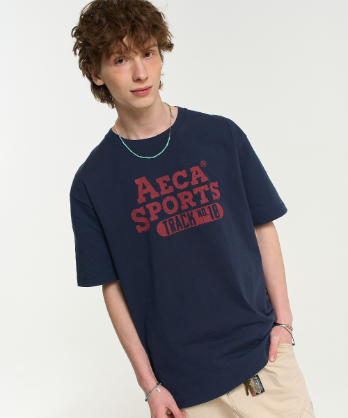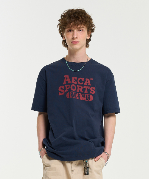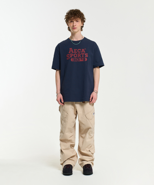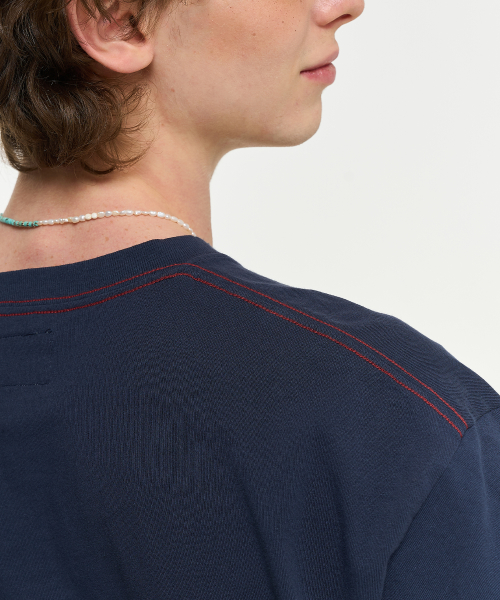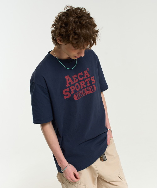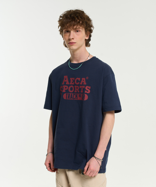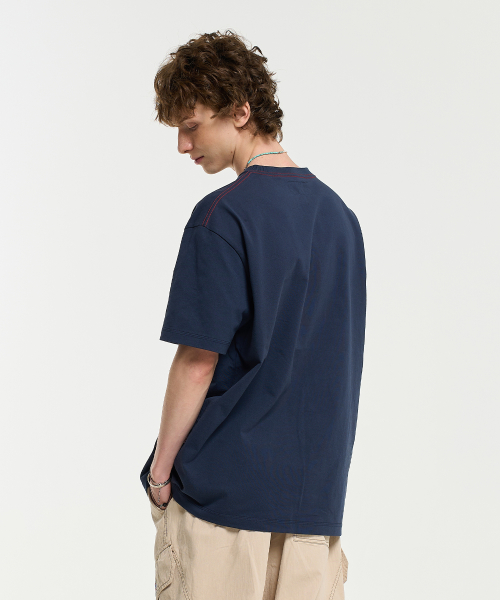 COLOR CHAIN STITCH AECA SPORTS HALF SLEEVE TEE-NAVY