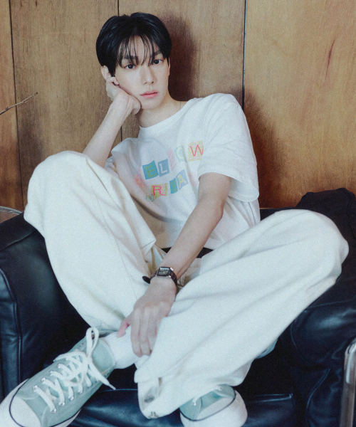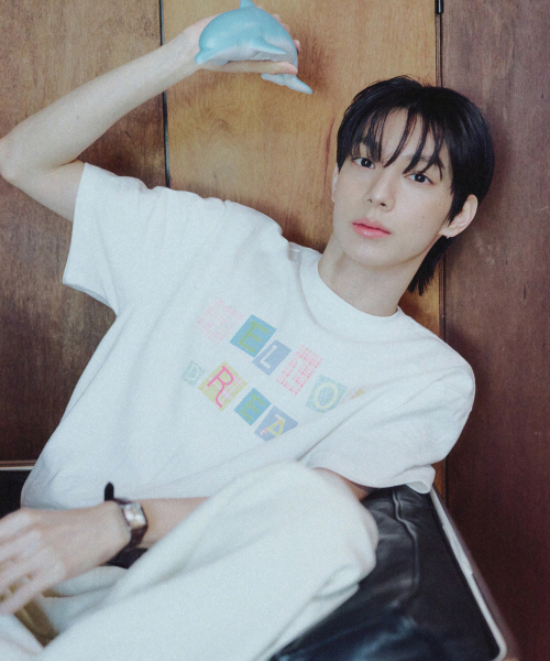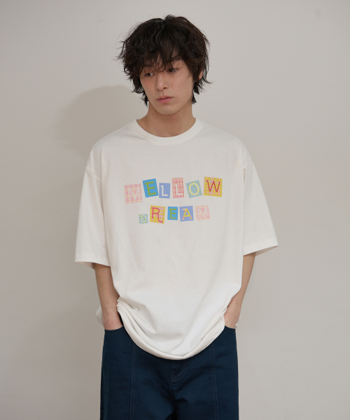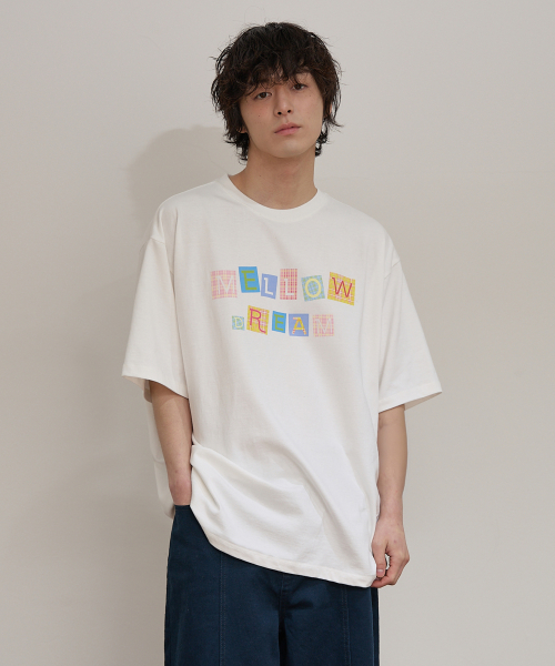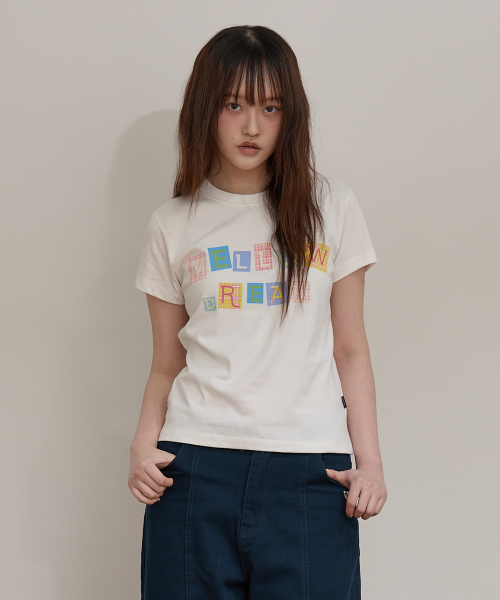 MELLOW DREAM 체크 레터 반팔티셔츠 아이보리