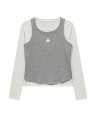 스타 컷아웃 탑 SET 레이어드 티셔츠 아이보리