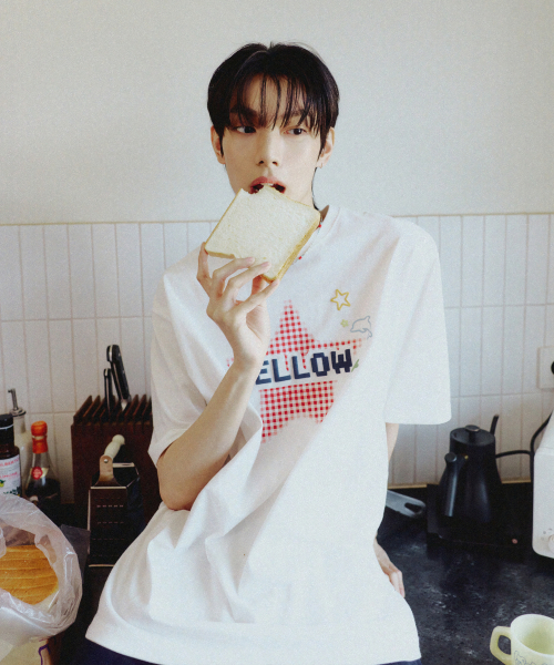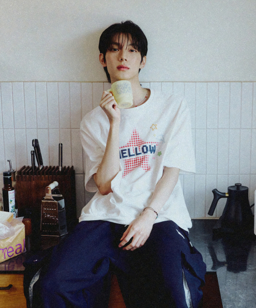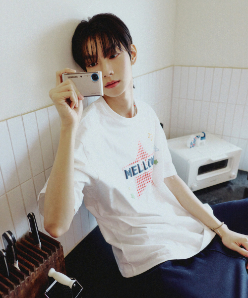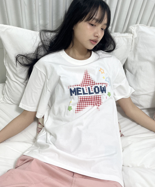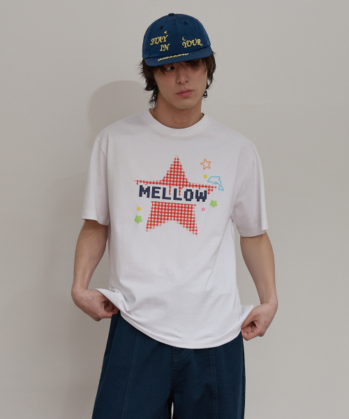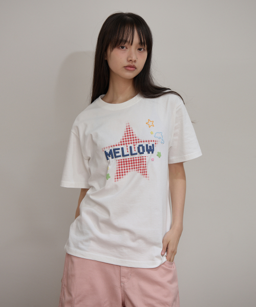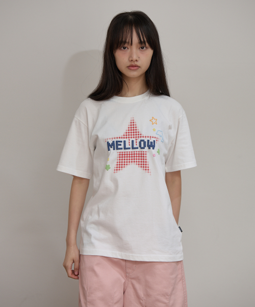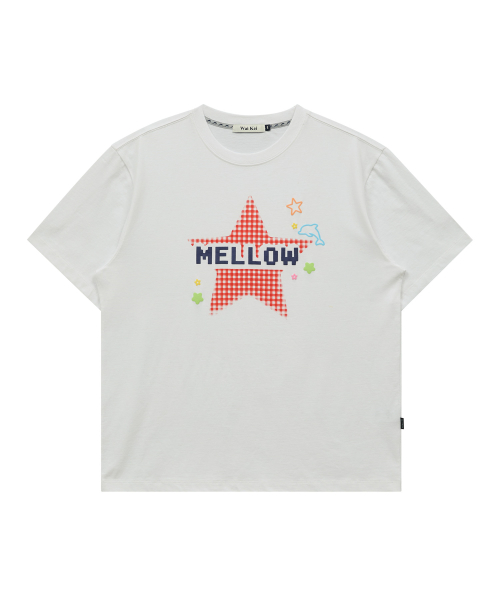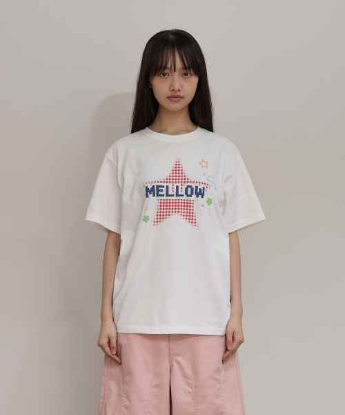 MELLOW 스타 체크 반팔티셔츠 아이보리