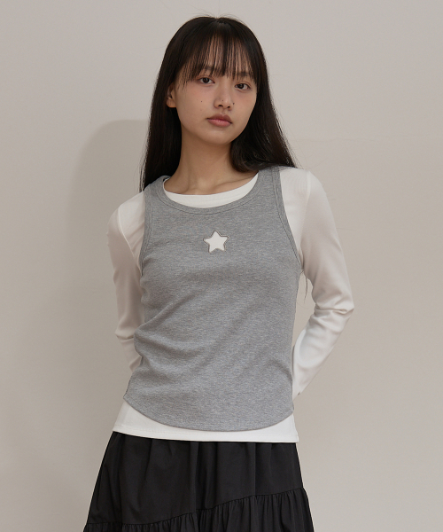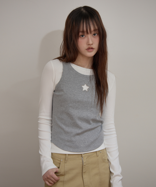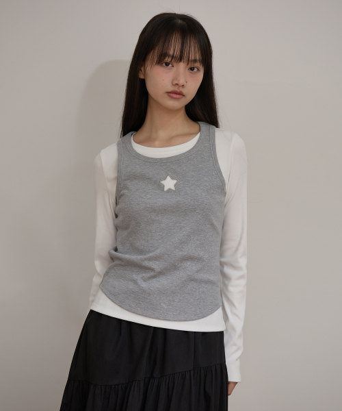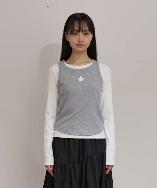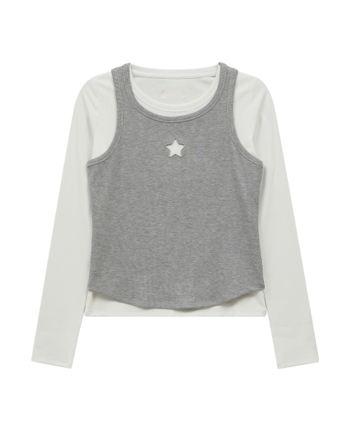 스타 컷아웃 탑 SET 레이어드 티셔츠 아이보리