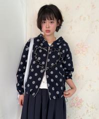 FRILL HEART HOODIE, DOT NAVY