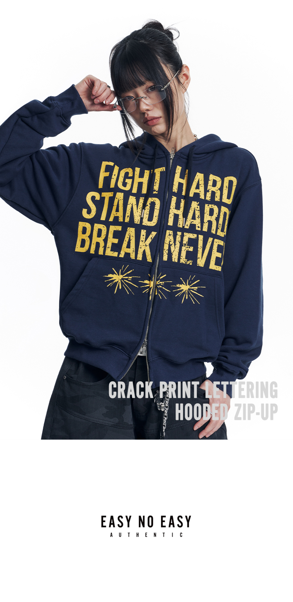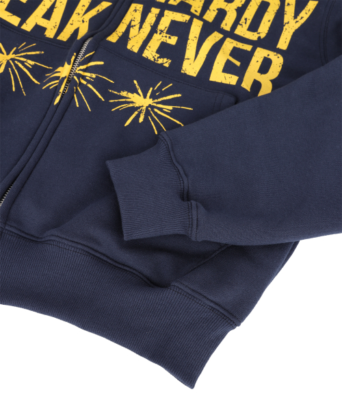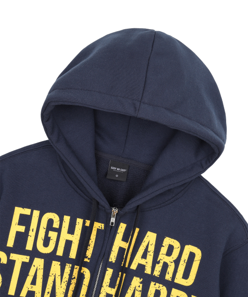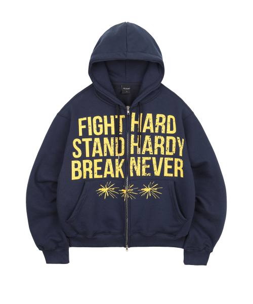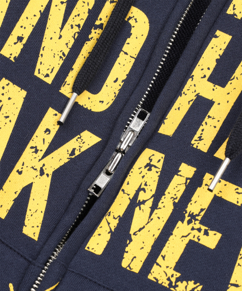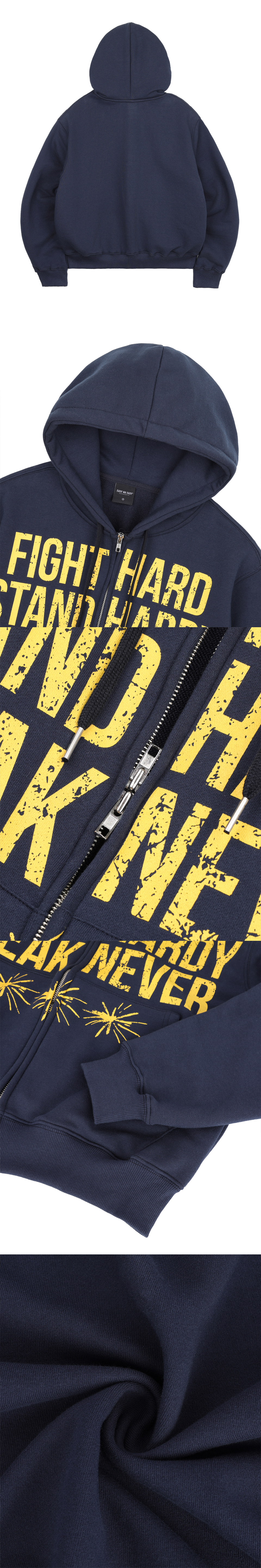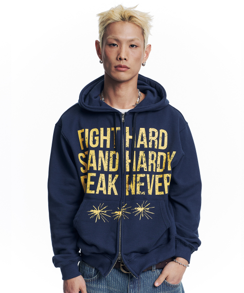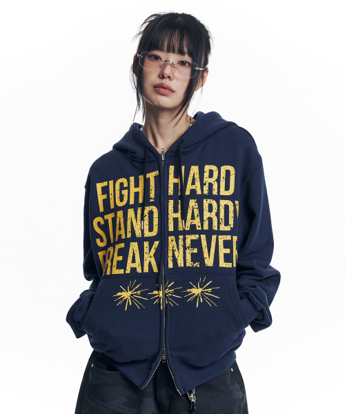 크랙 나염 레터링 후드 집업 - 네이비