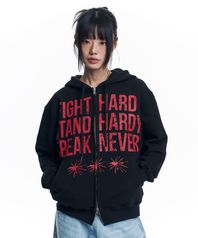 크랙 나염 레터링 후드 집업 - 블랙