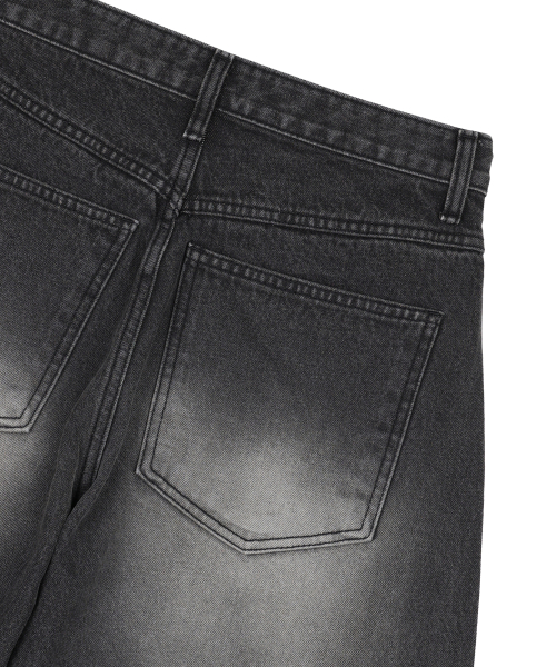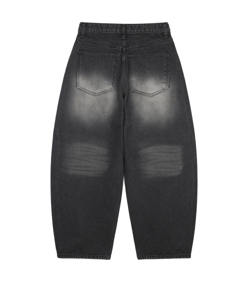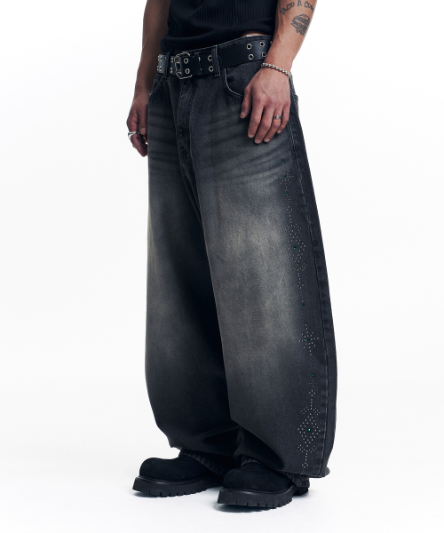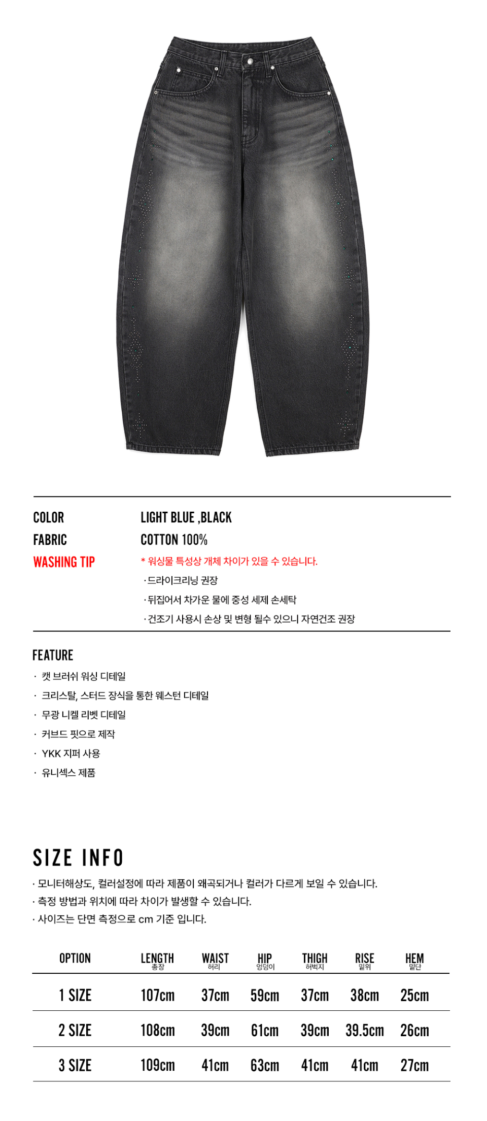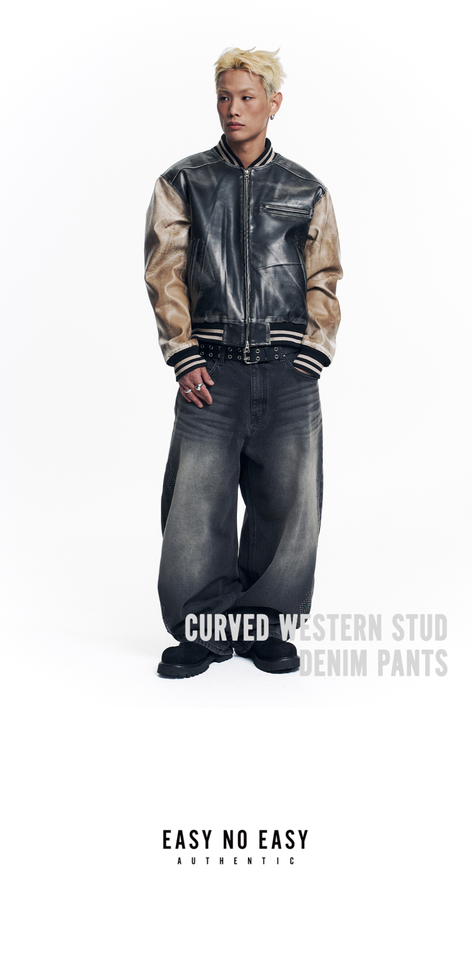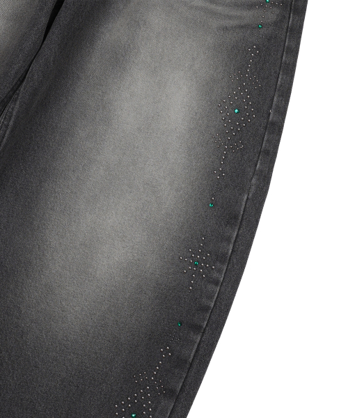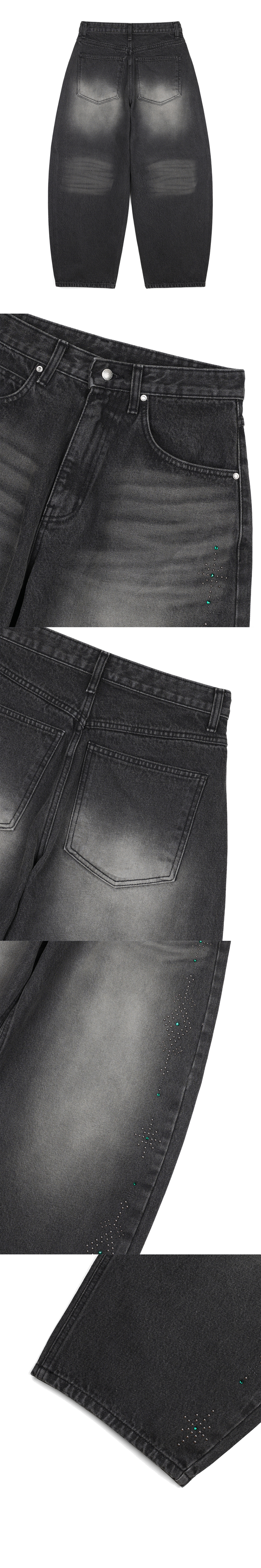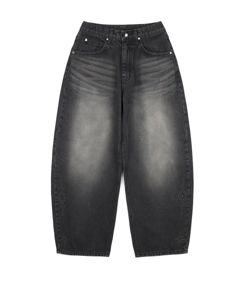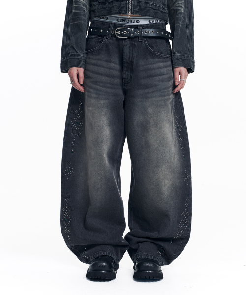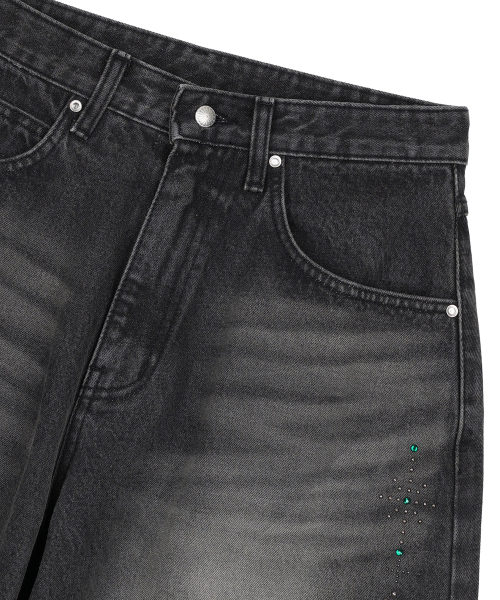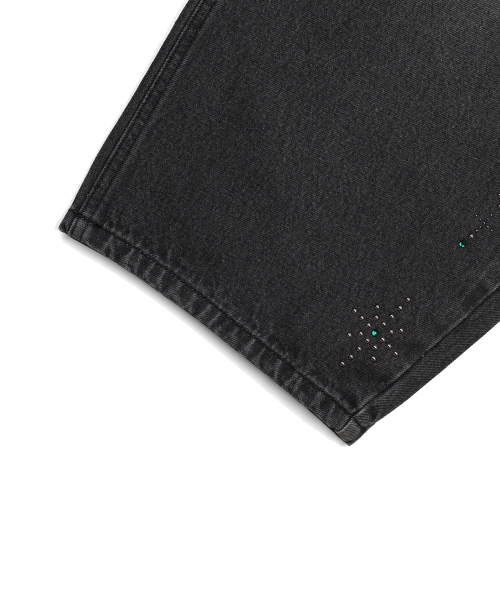 커브드 웨스턴 스터드 데님 팬츠 - 블랙