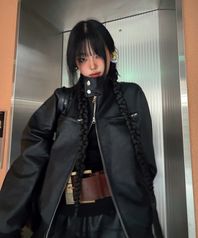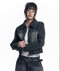 워시드 크롭 트랙 데님 자켓 - 블랙