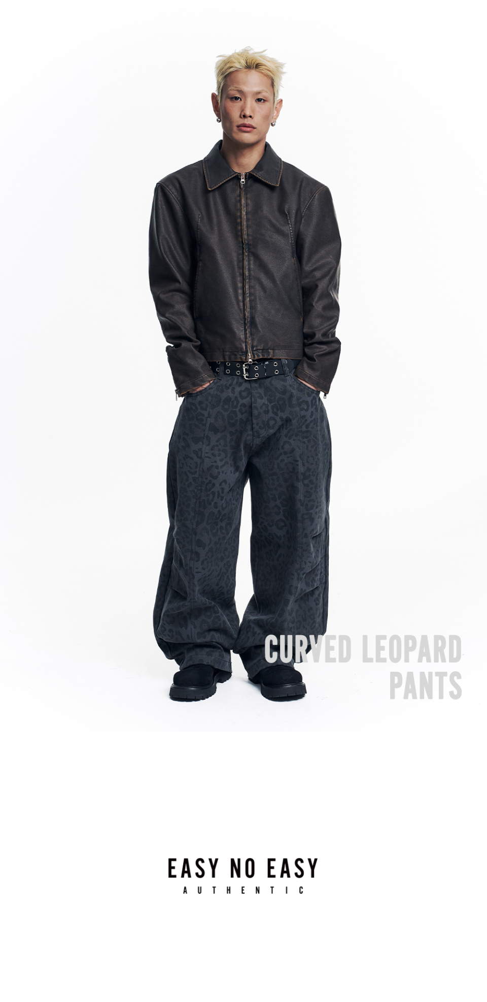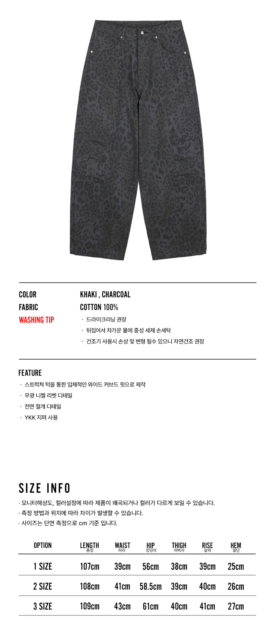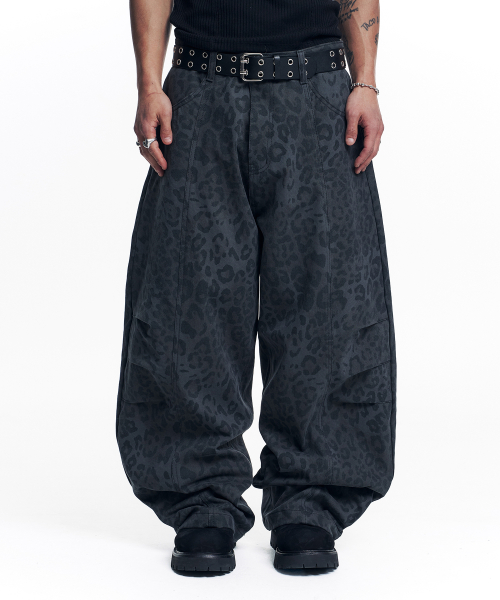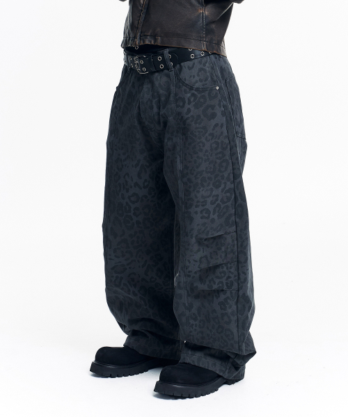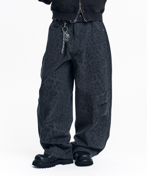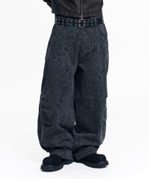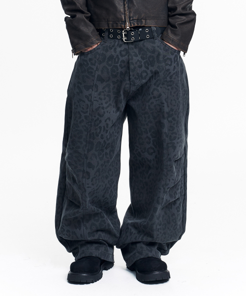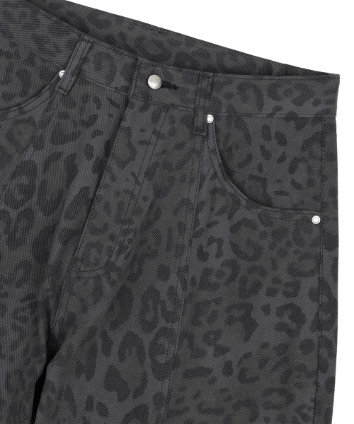 커브드 레오파드 팬츠 - 차콜