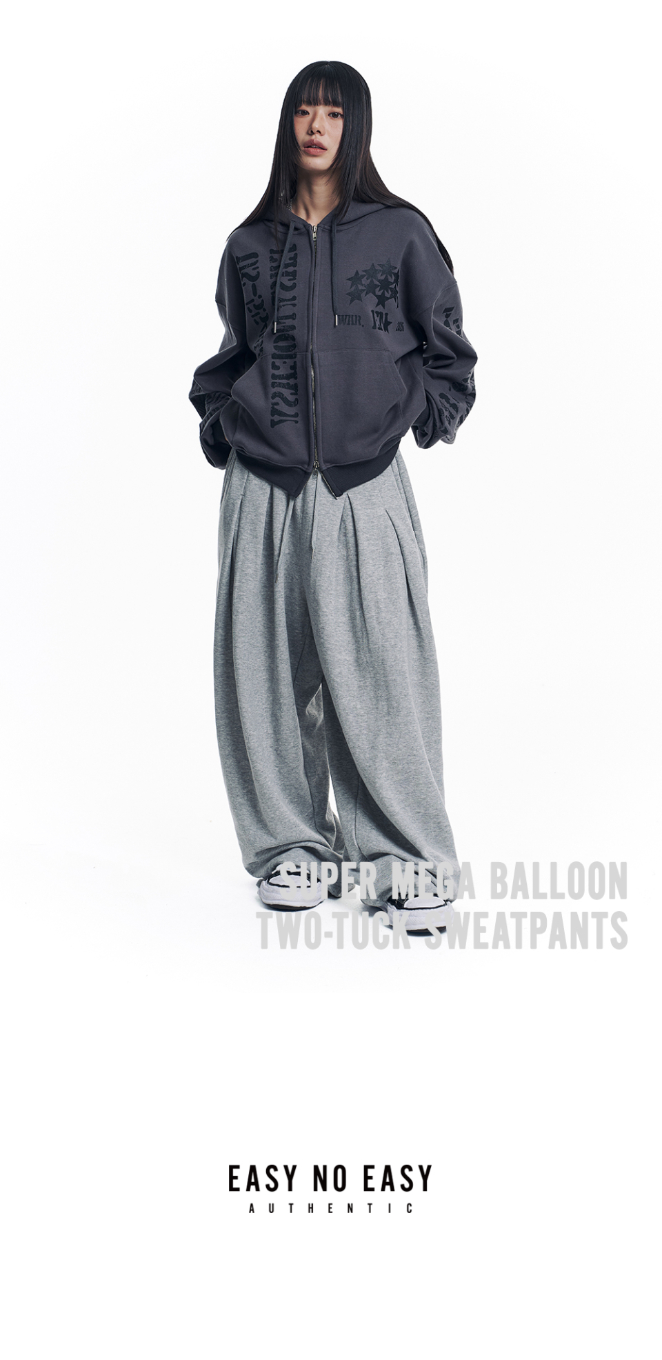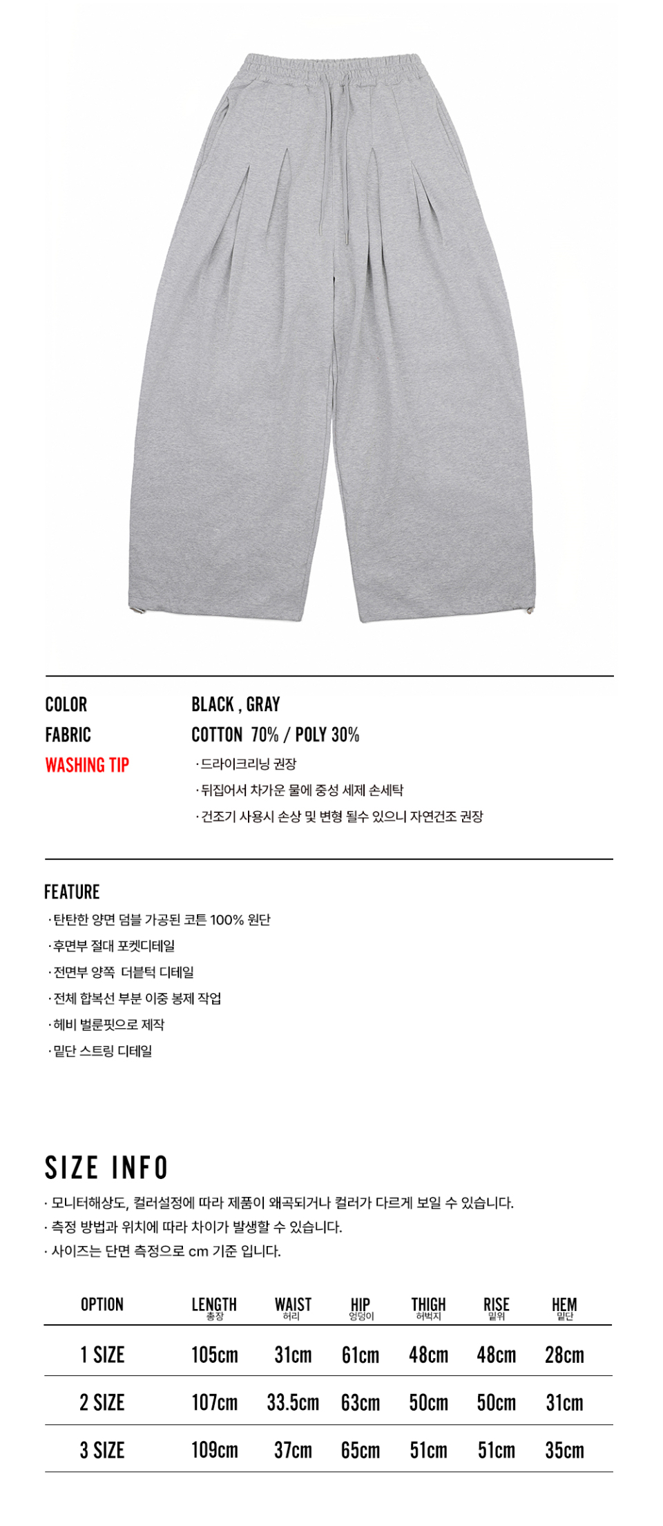 슈퍼 메가 벌룬 투턱 스웻 팬츠 - 그레이