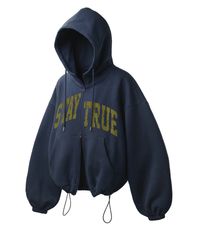 아치 스테이 스트링 오버핏 투웨이 후드 집업 - 네이비