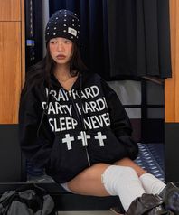 PRAY HARD HOODIE ZIP UP - BLACK