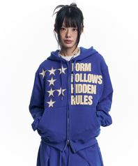 스타 레터링 패치 후드 집업 - 블루