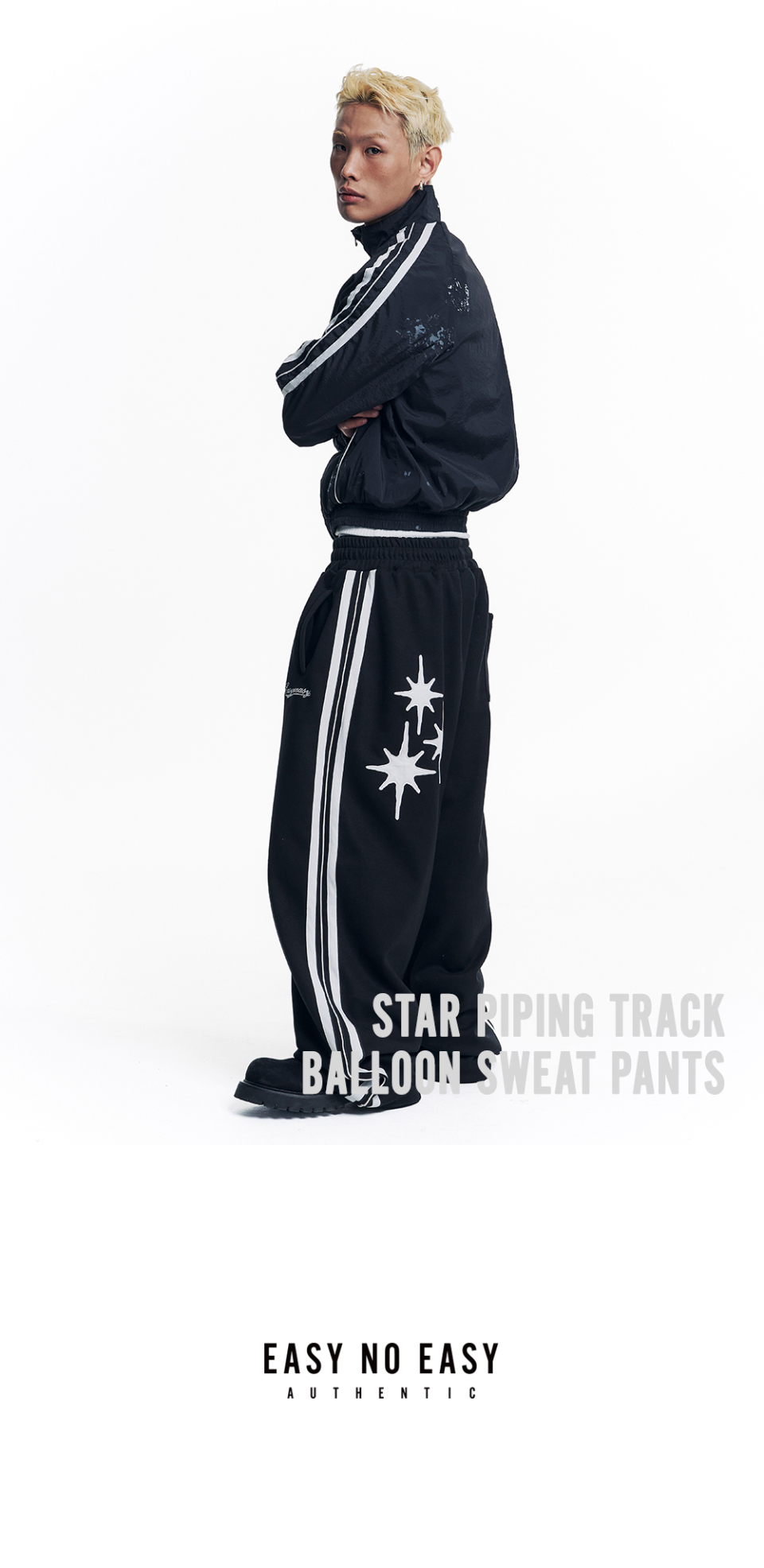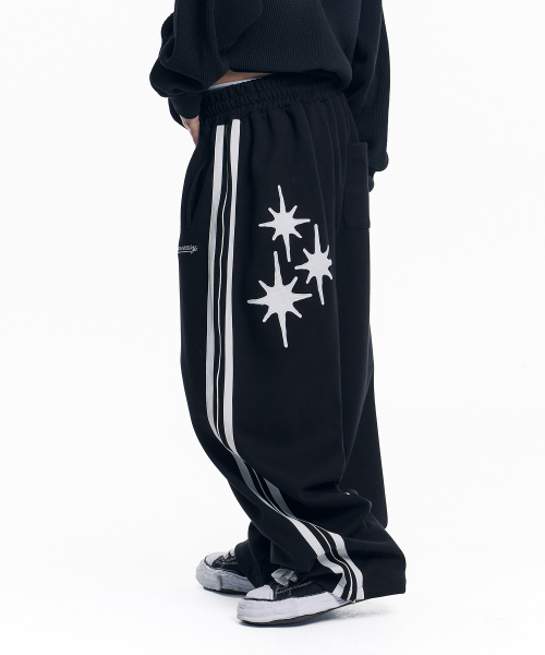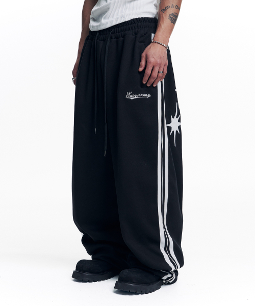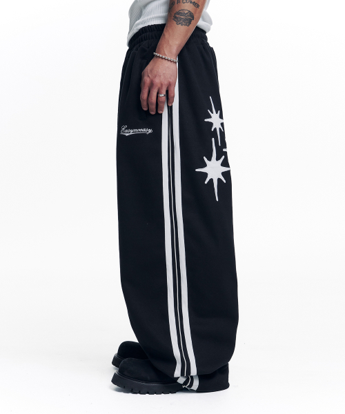 스타 파이핑 트랙 벌룬 스웻 팬츠 - 블랙