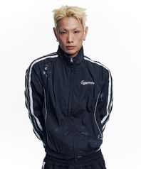 더티 나일론 파이핑 트랙 자켓 - 블랙