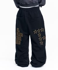 스타 레터링 패치 스웻 팬츠 - 블랙