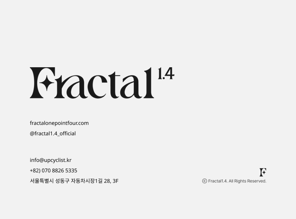 프랙탈1.4(FRACTALONEPOINTFOUR)는 0부터 2까지 시각적 복잡도 중 1.4의 이상적 아름다움을 모티브로 일상에 특별한 순간을 선사하는 디자인 브랜드입니다.