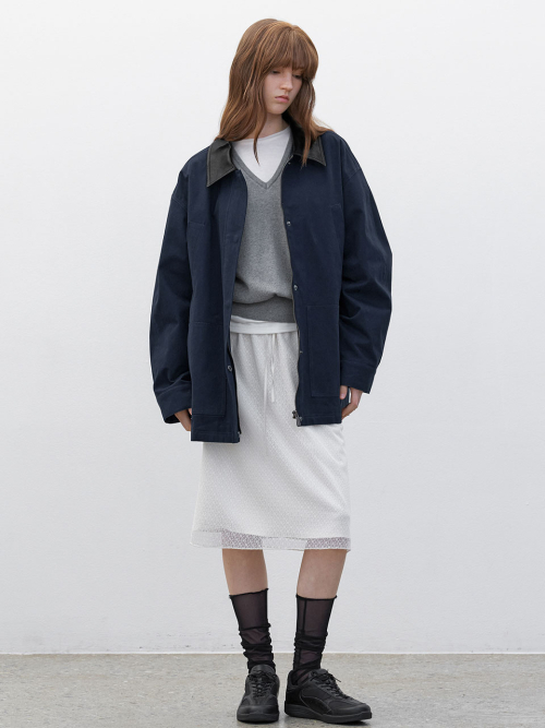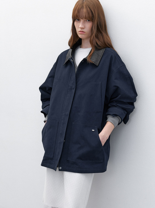 레더 배색으로 포인트를 준 코튼 자켓 입니다.