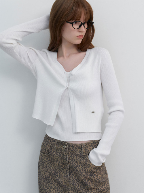 크롭 기장의 가디건과 셔링 포인트 나시탑이 세트로 구성된 아이템입니다.