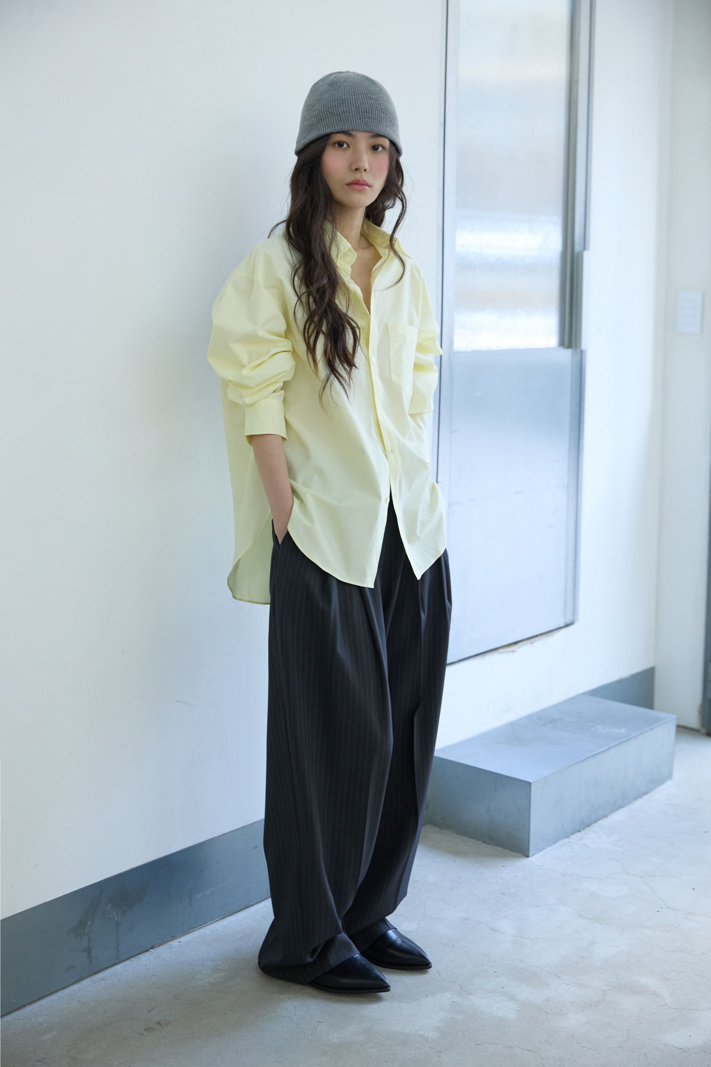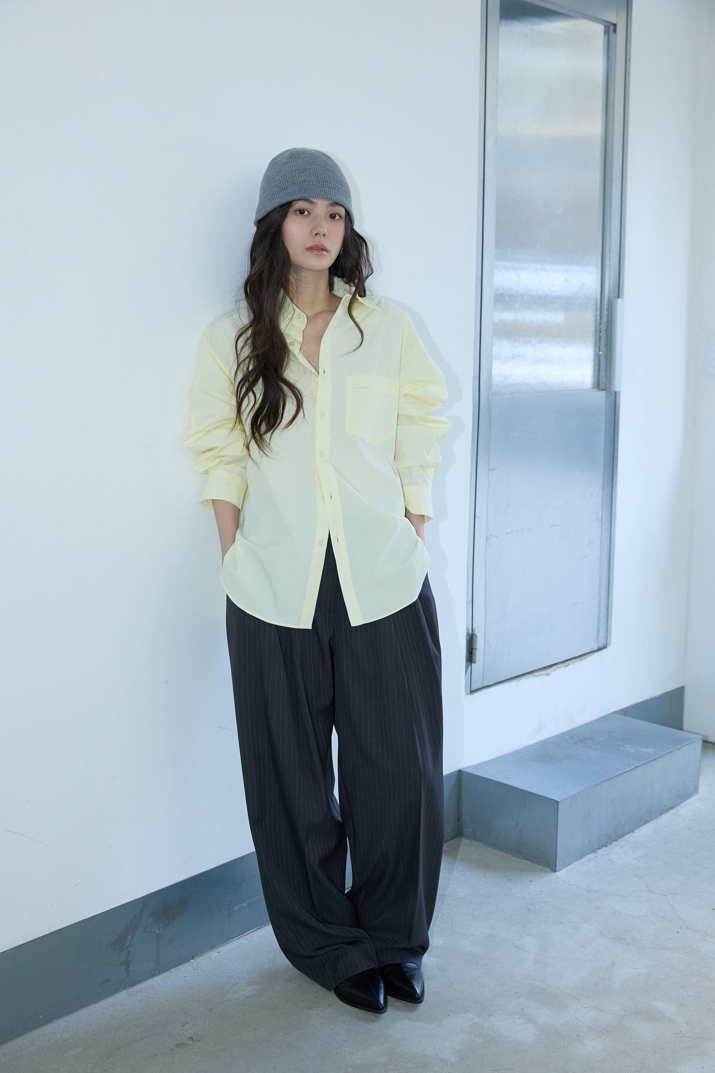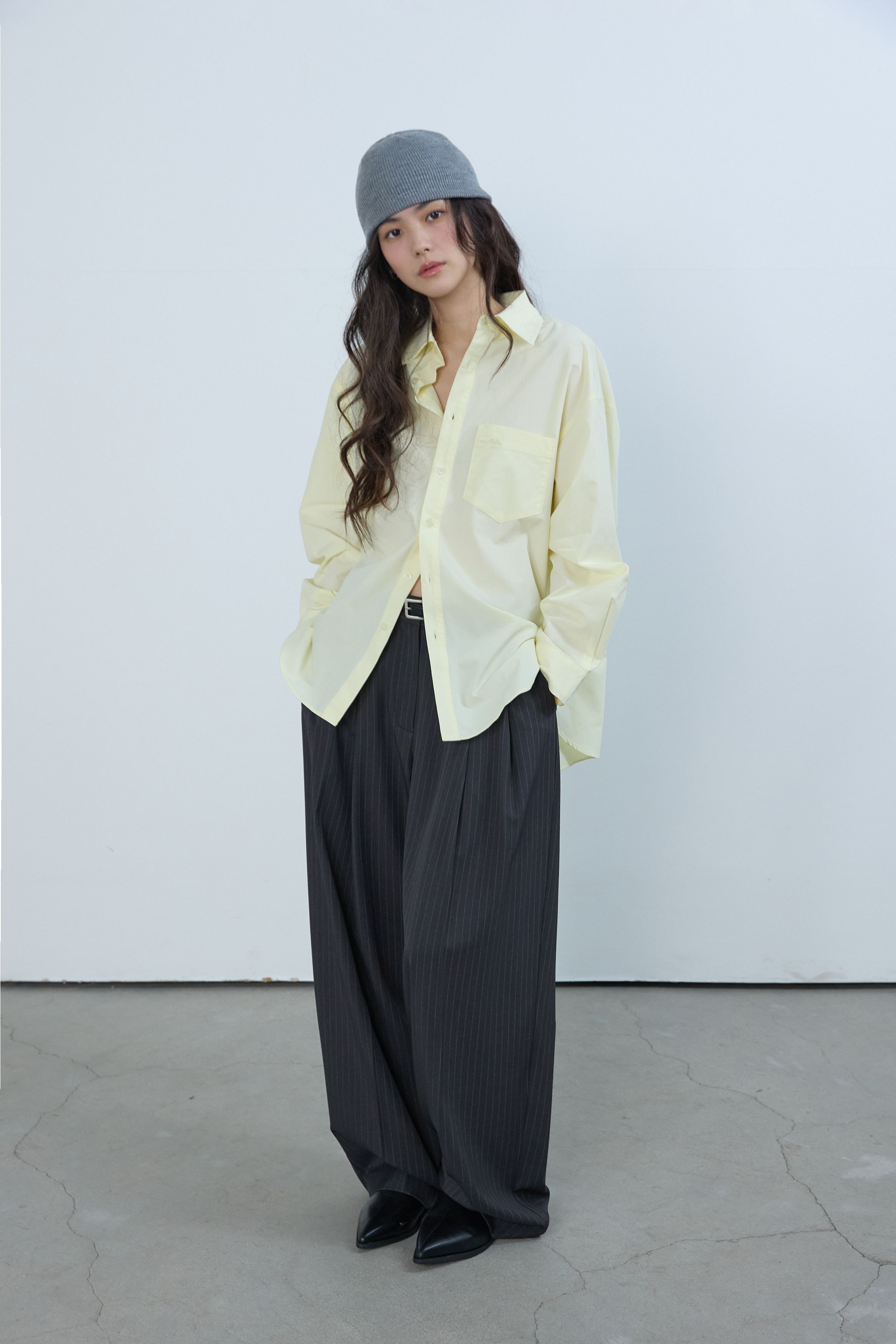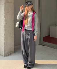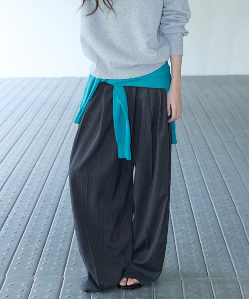 핀 스트라이프 투-턱 슬랙스 그레이