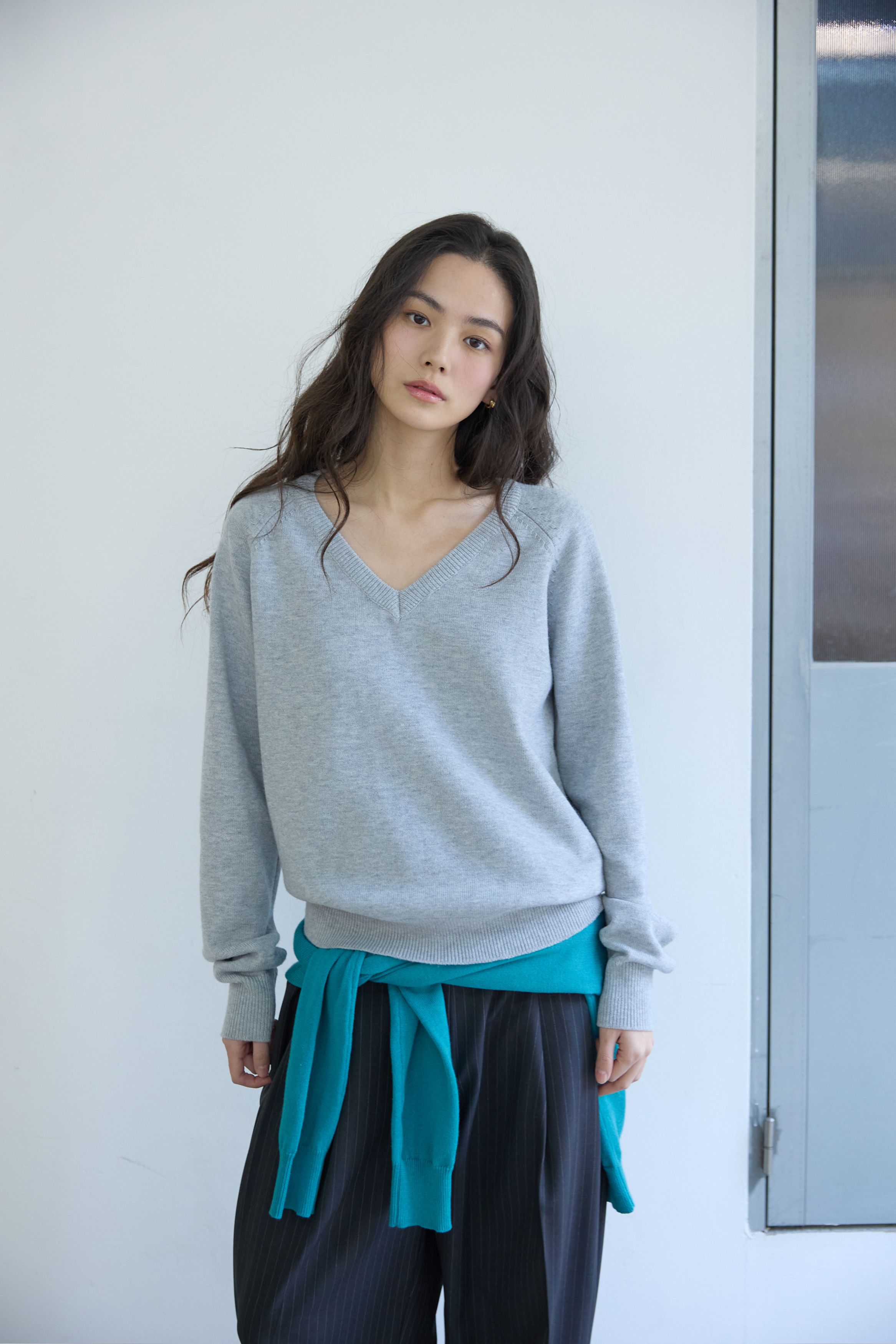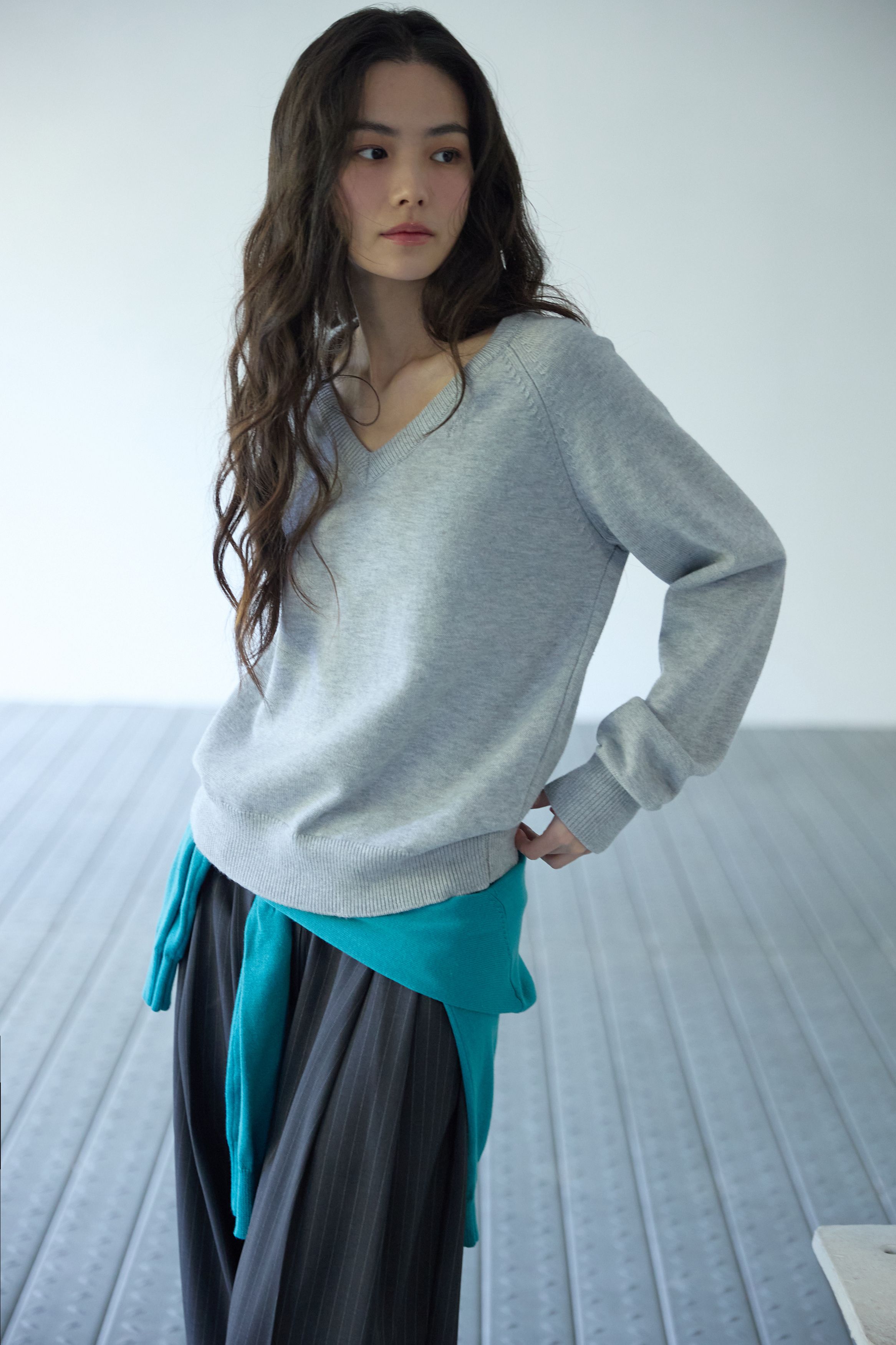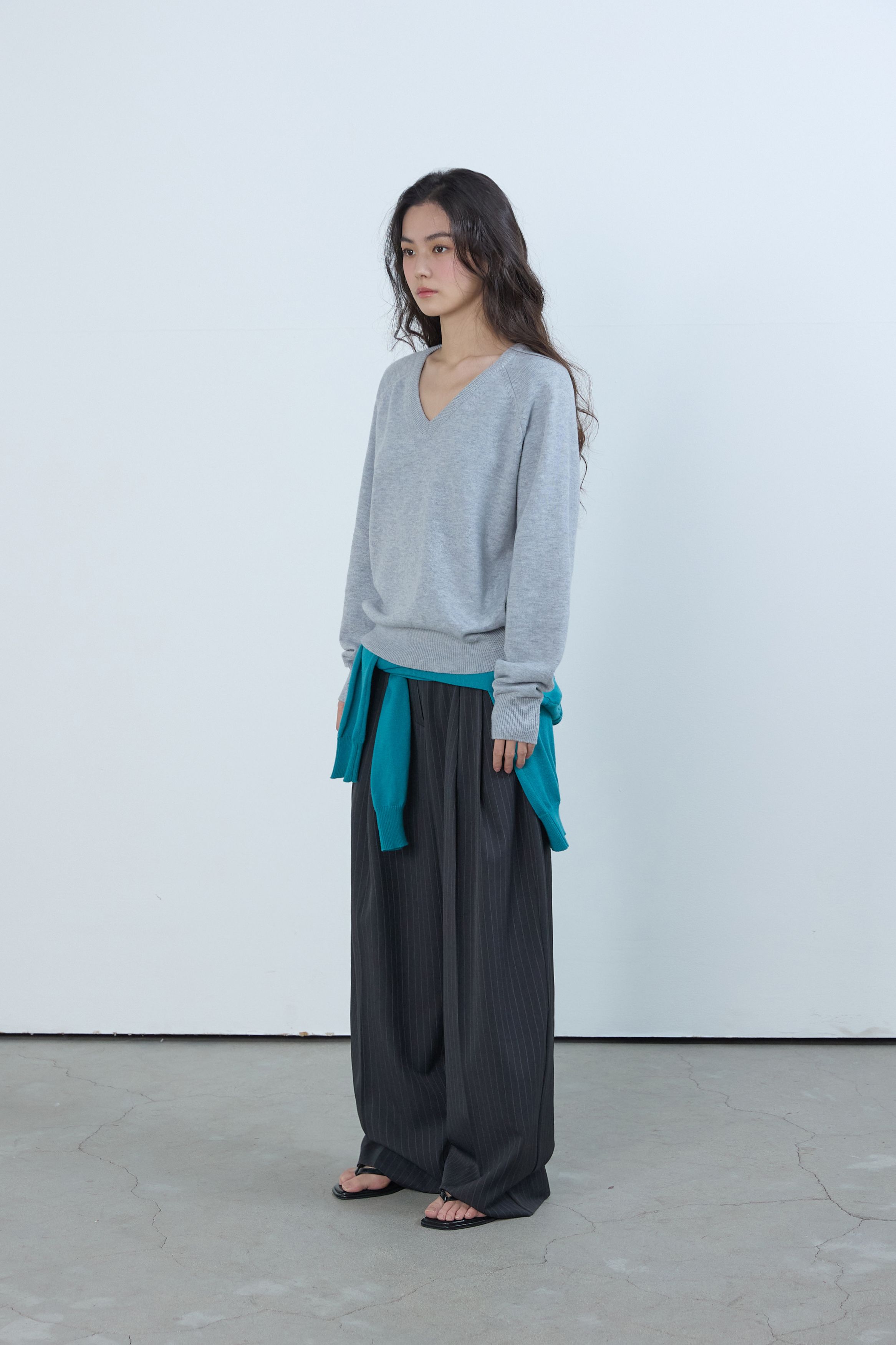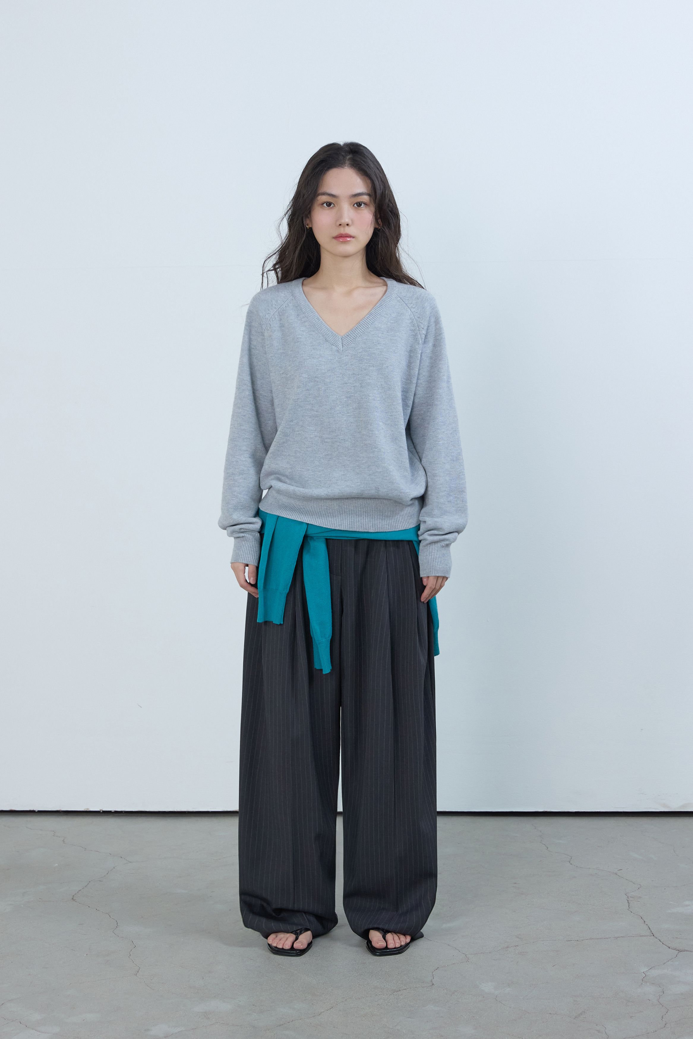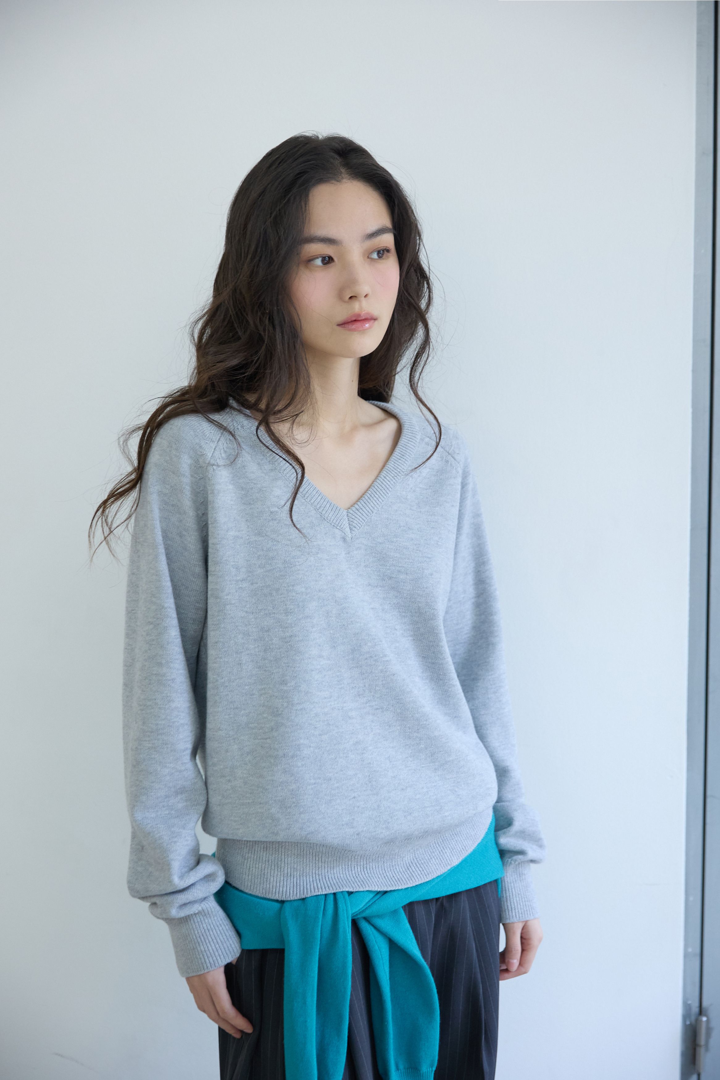 베이직 브이넥 울 니트 멜란지 그레이