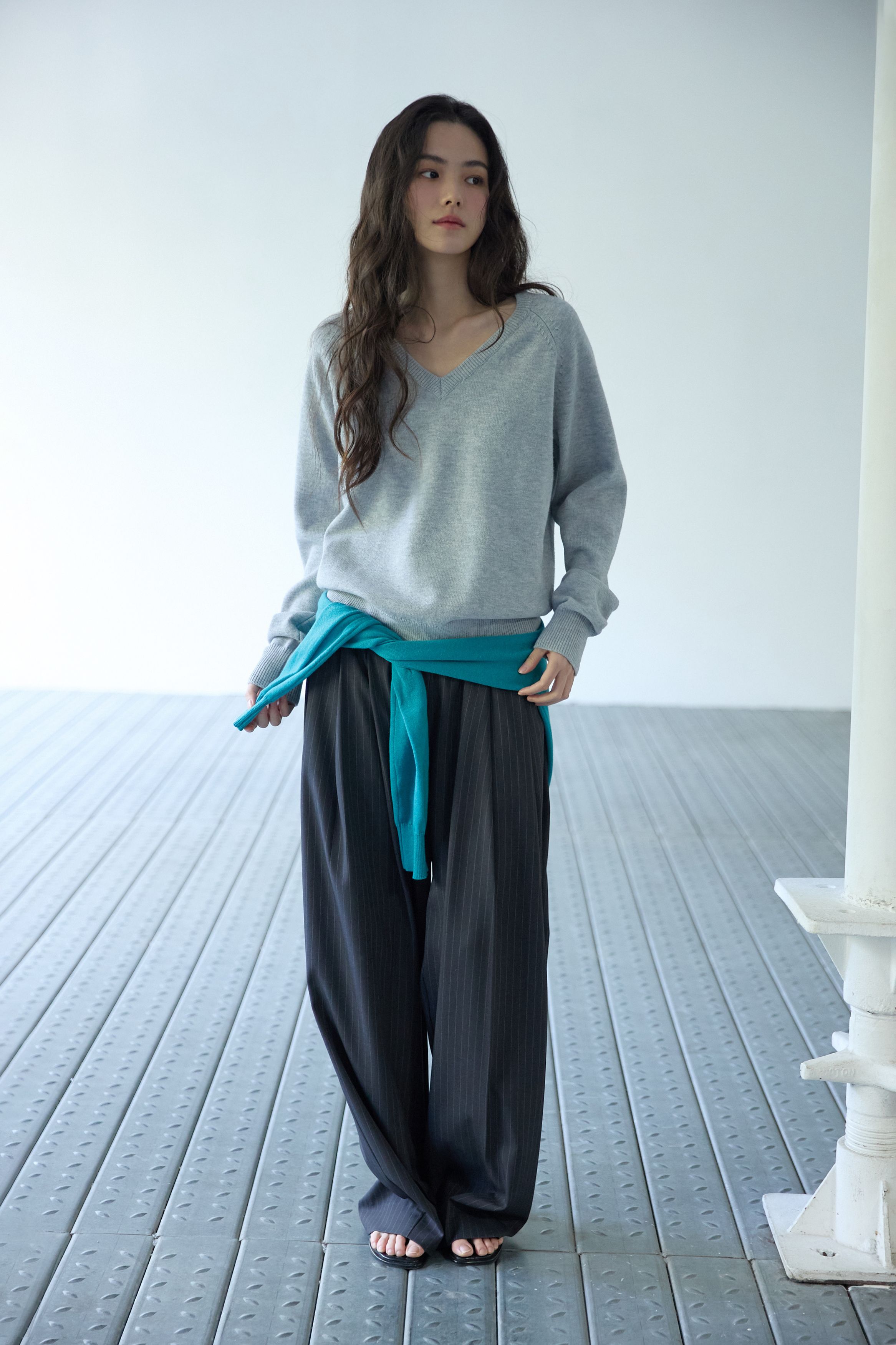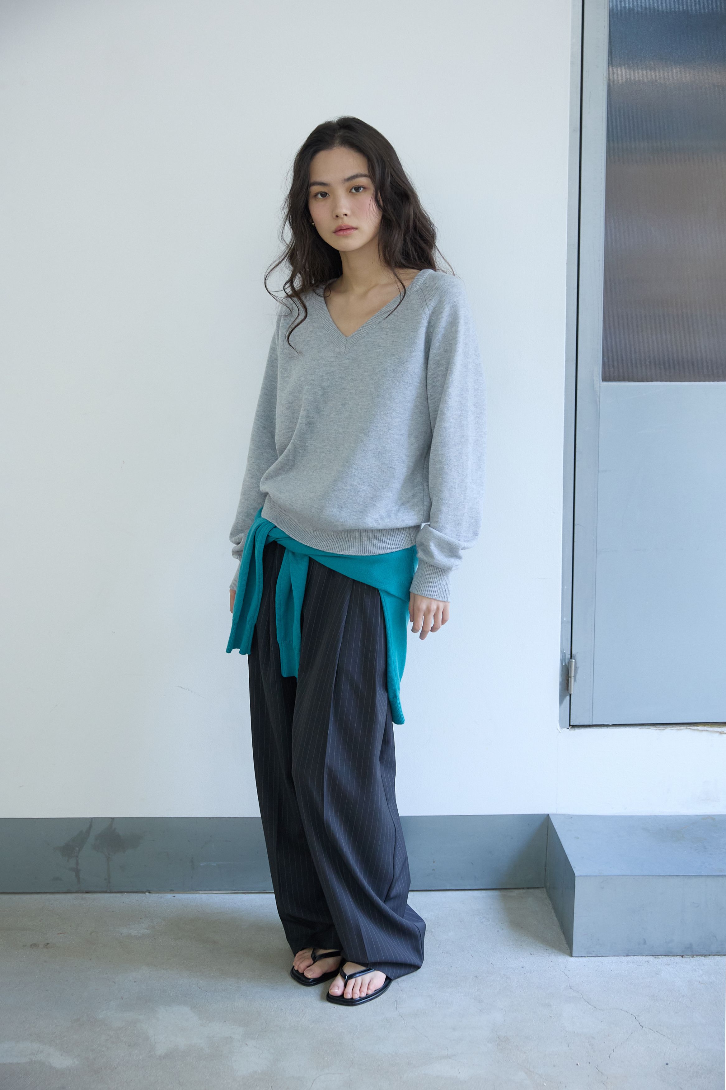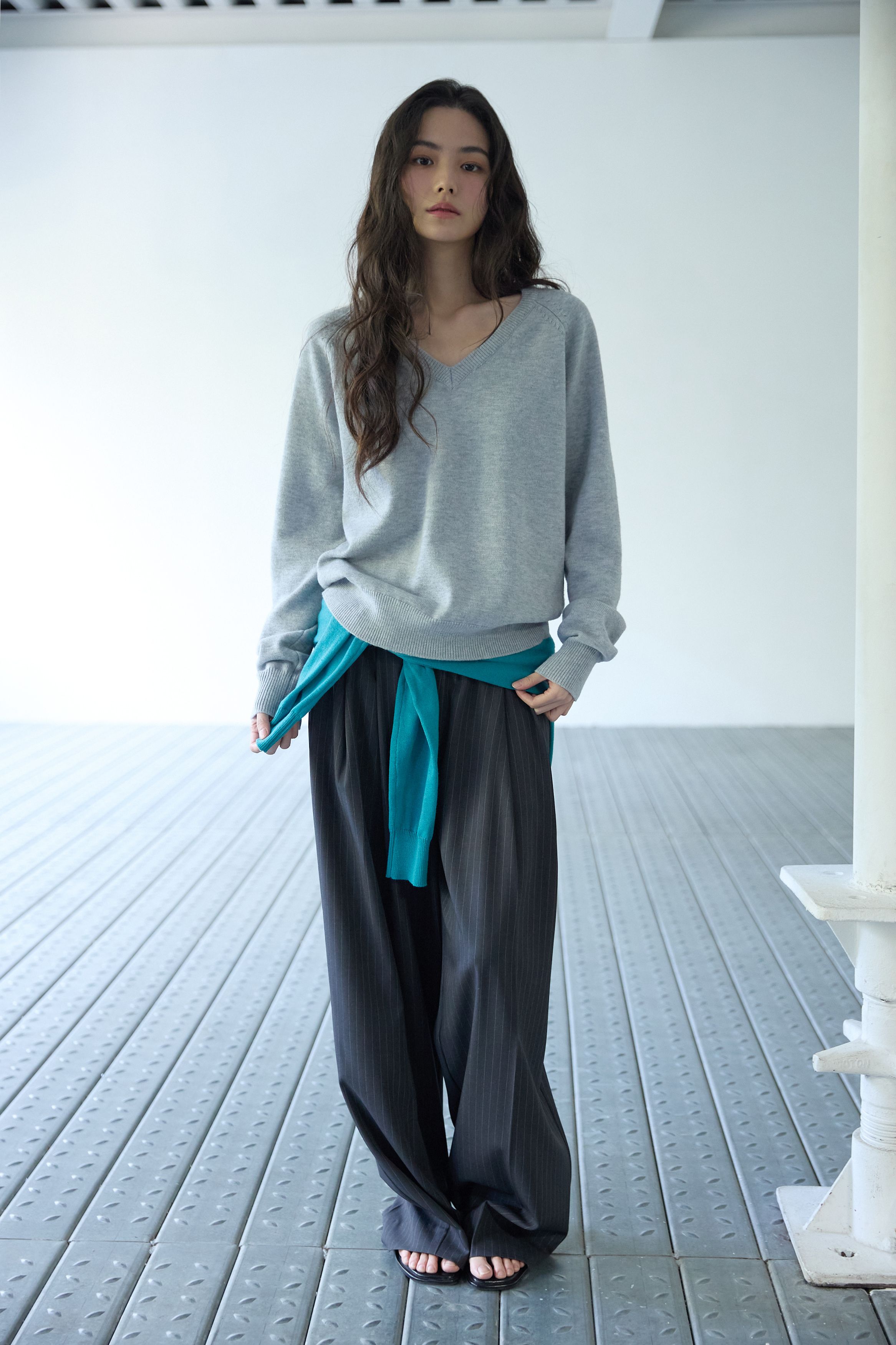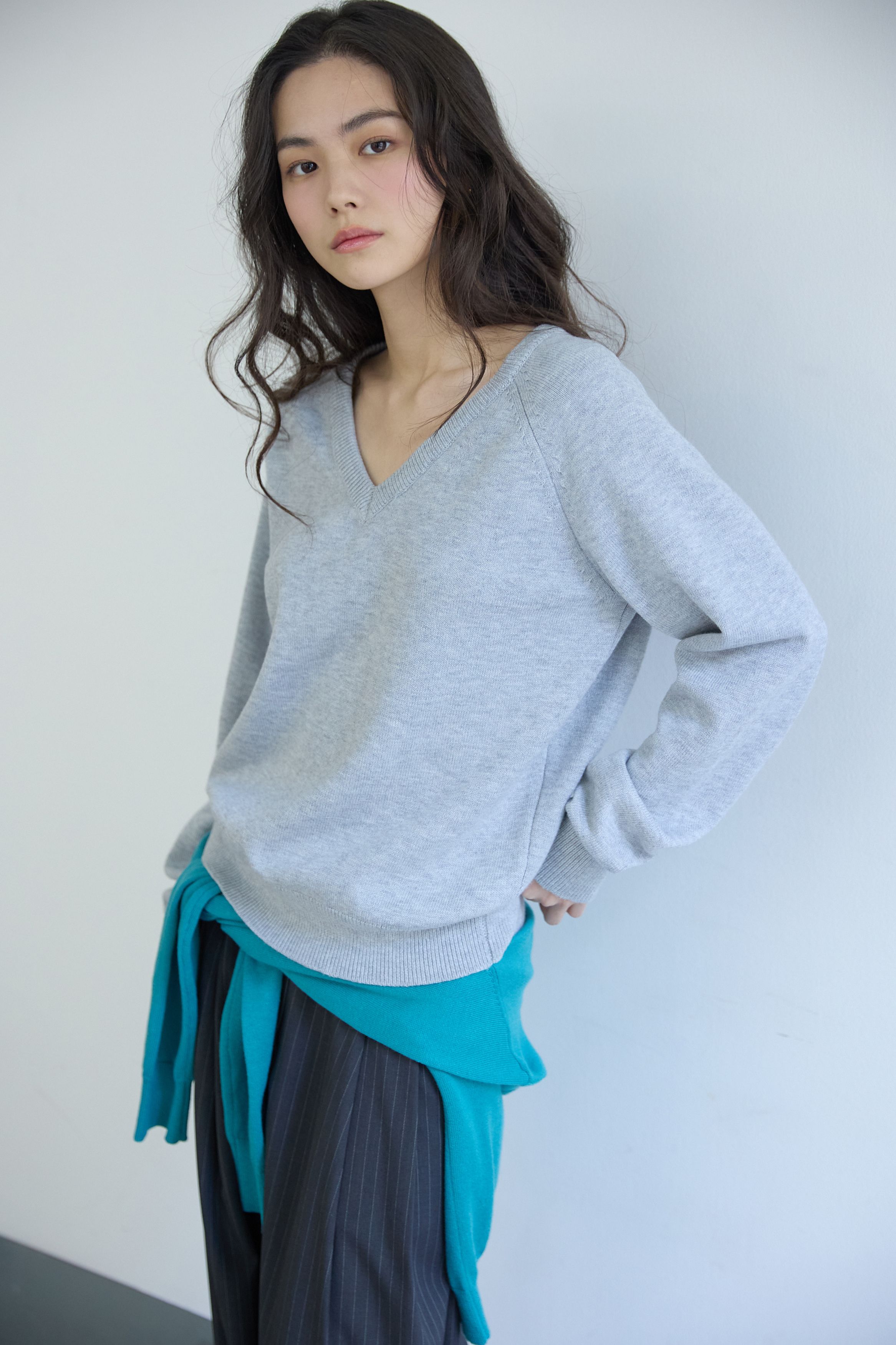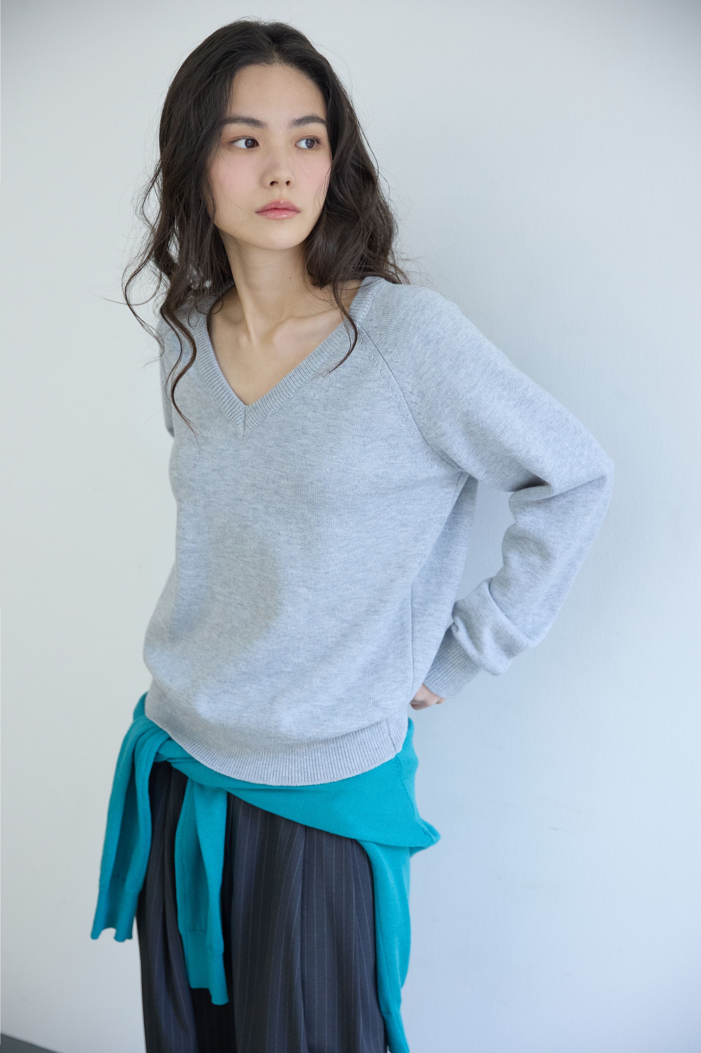 베이직 브이넥 울 니트 멜란지 그레이