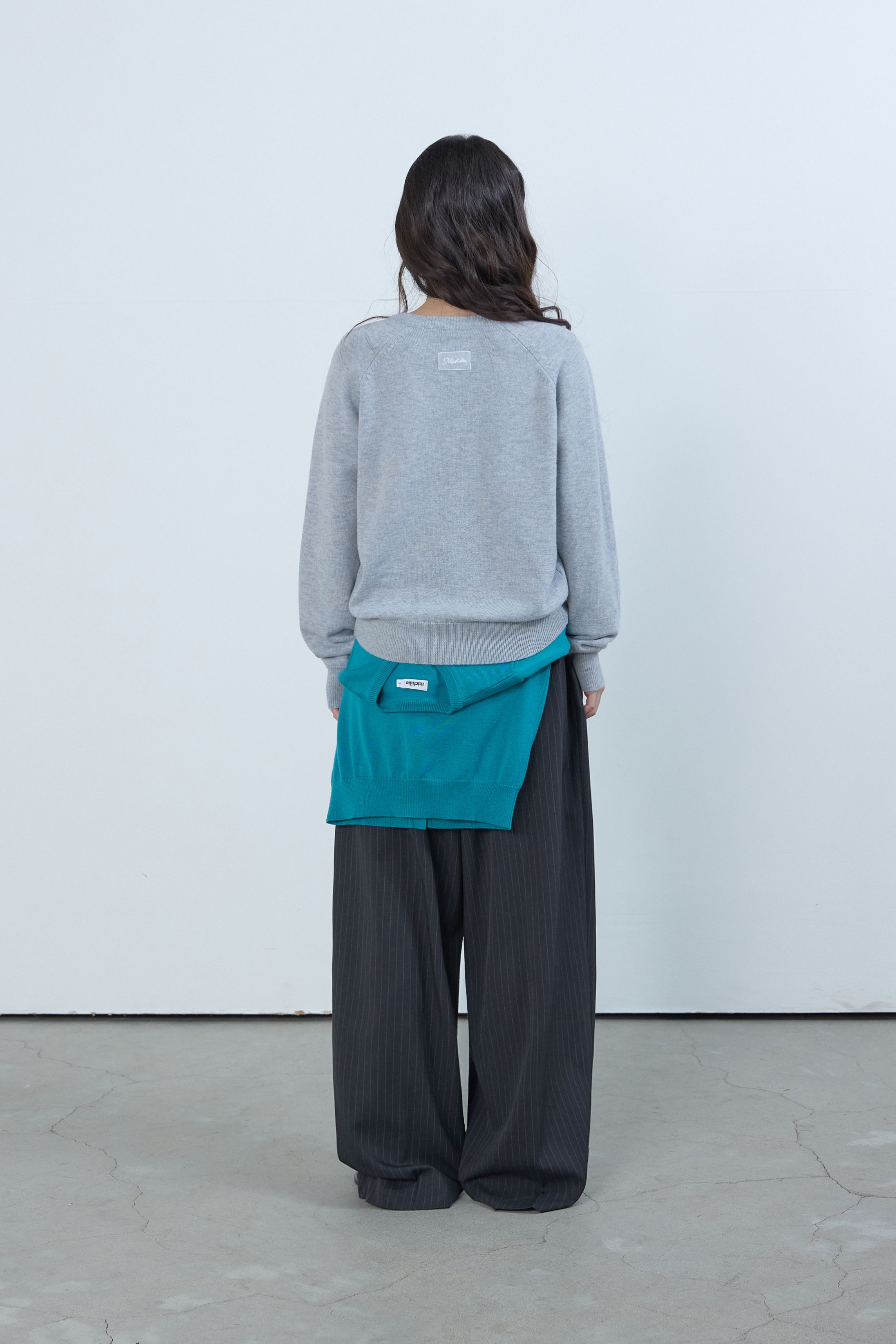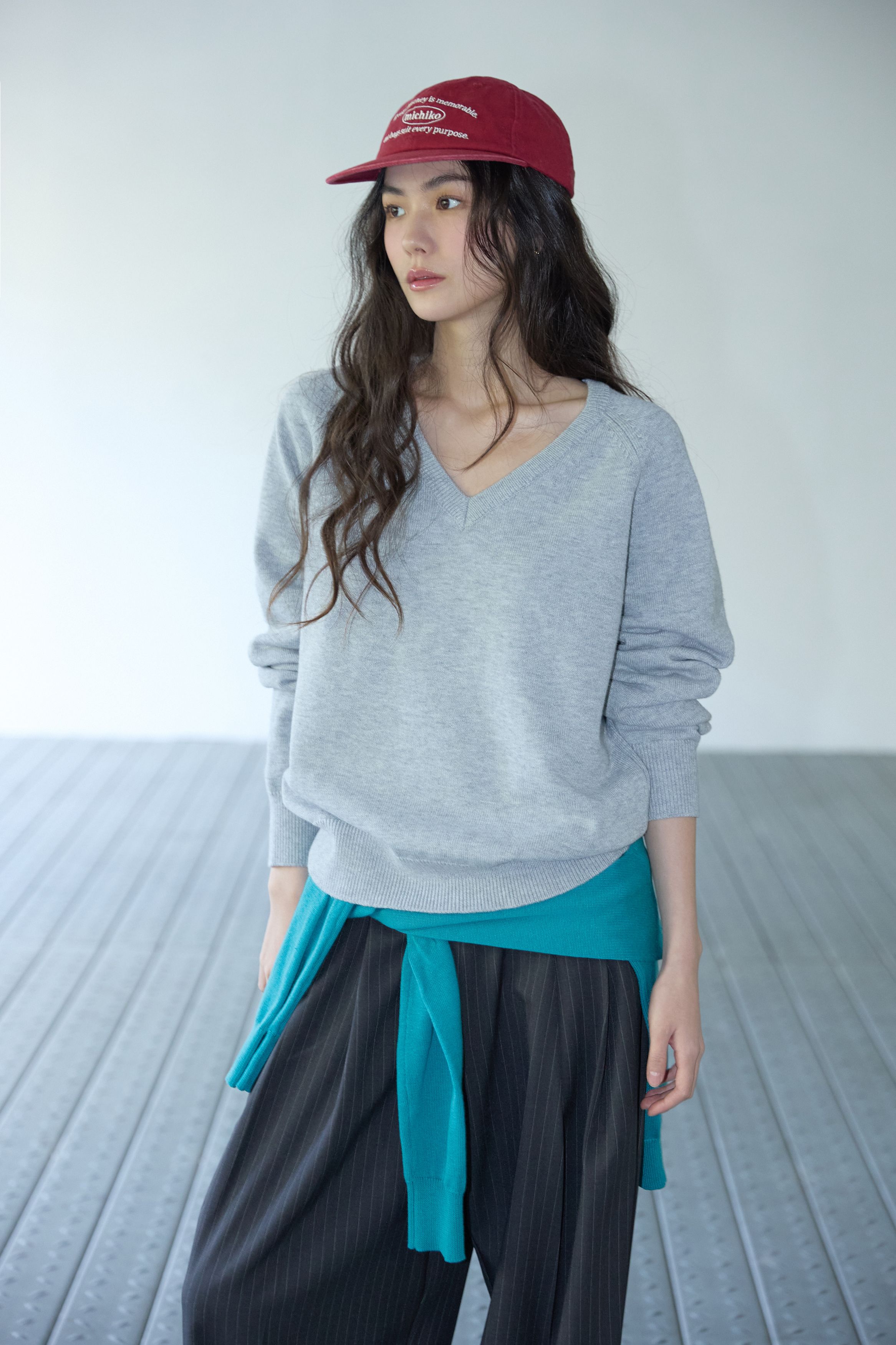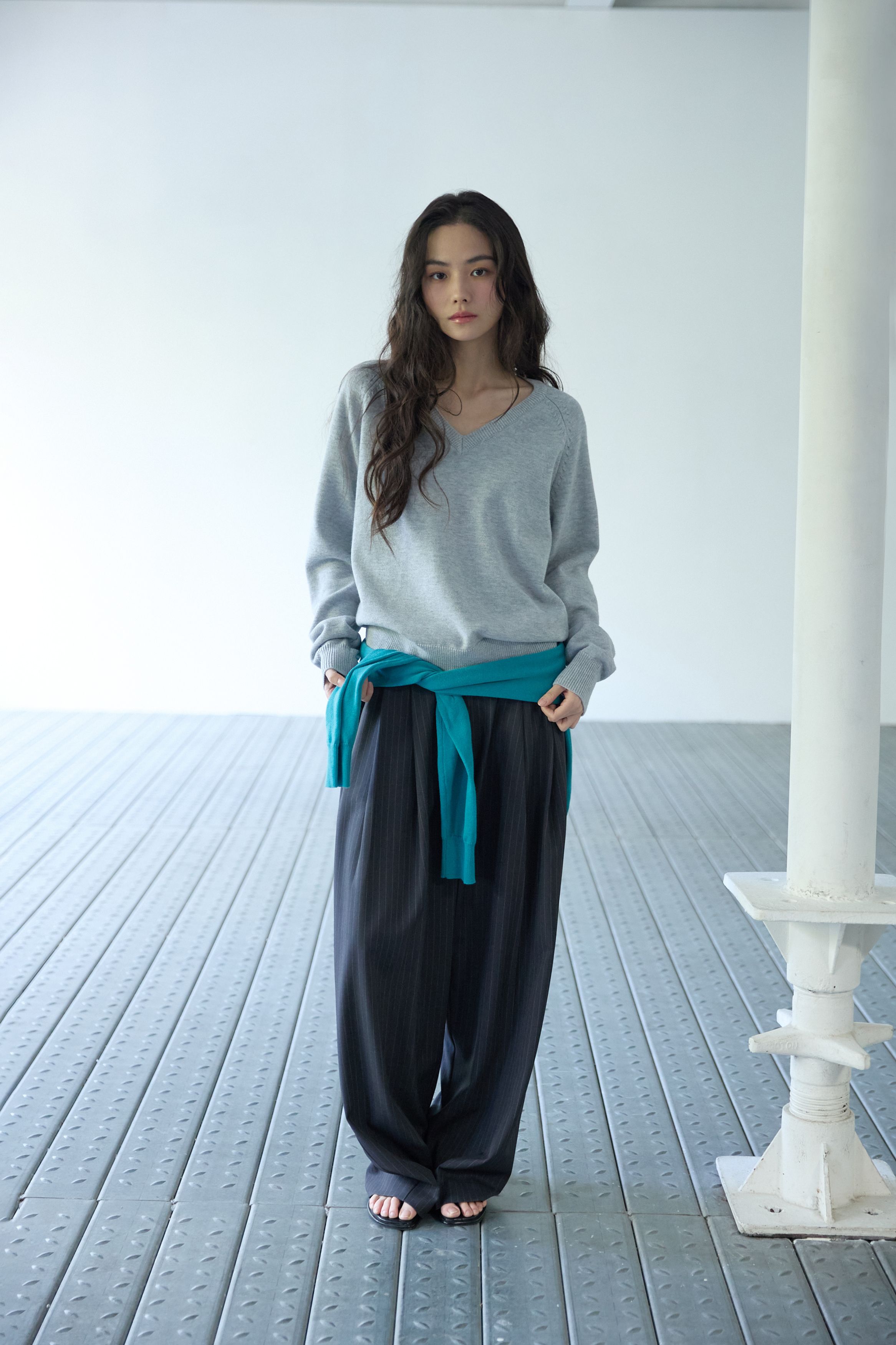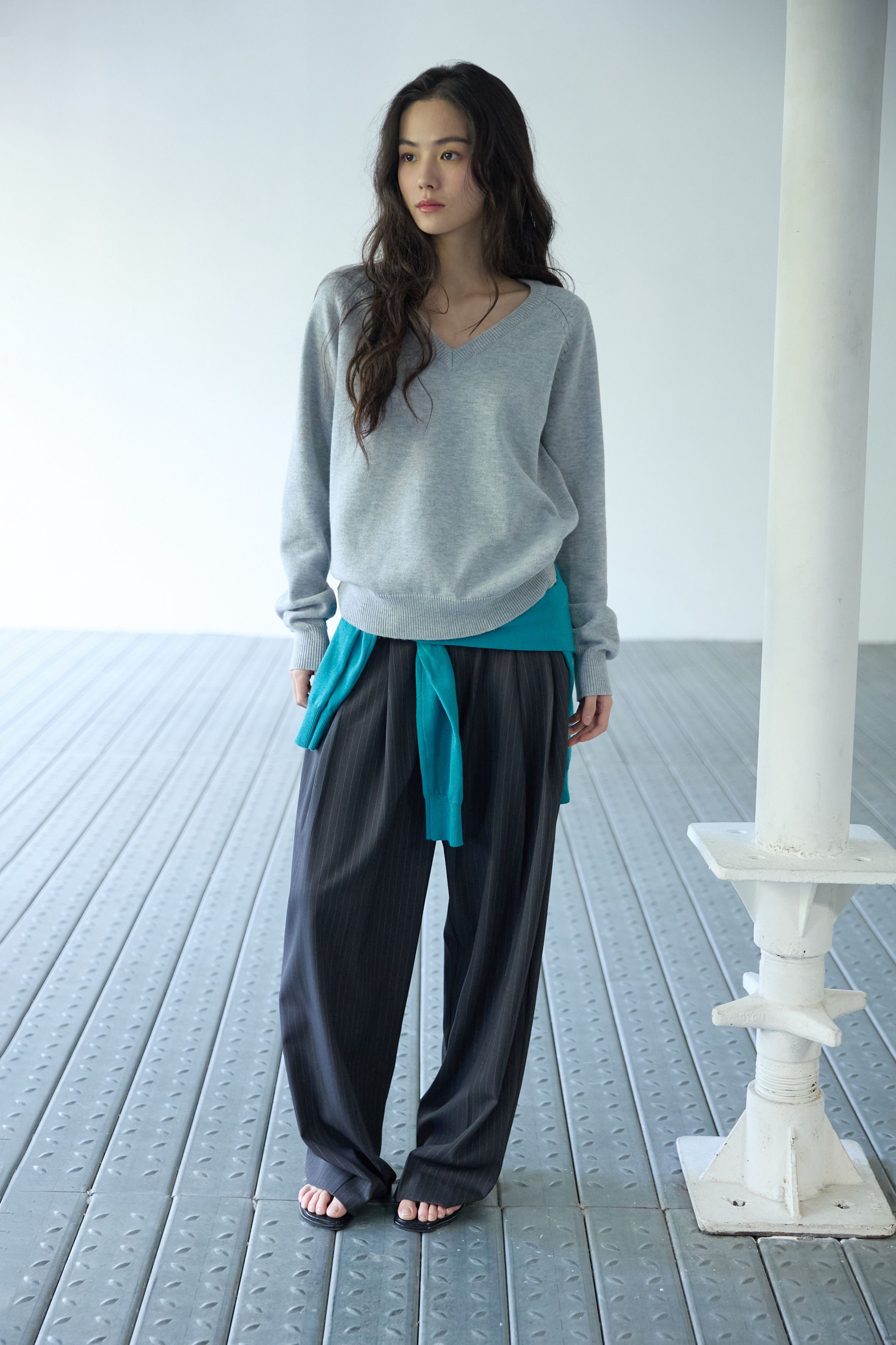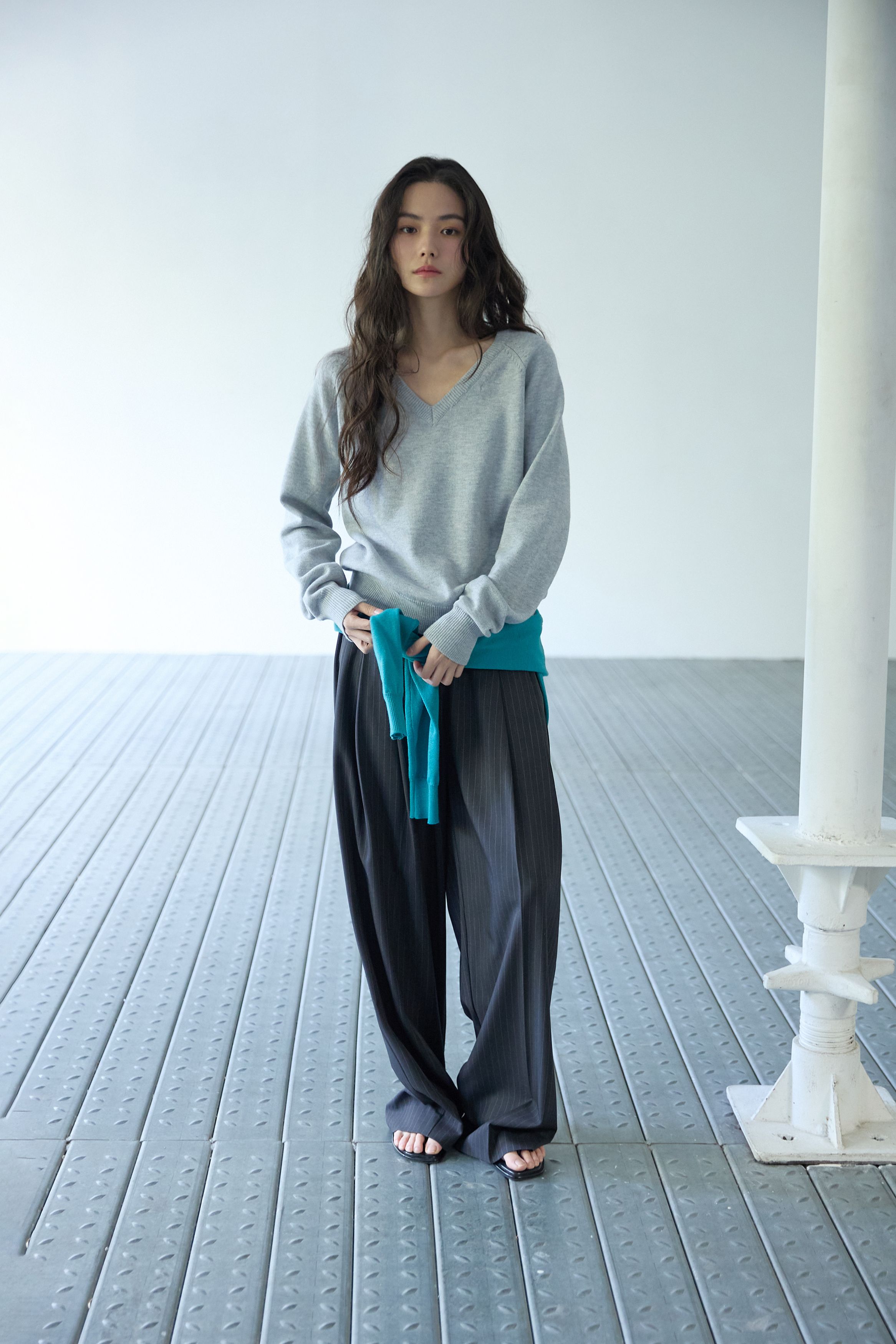 베이직 브이넥 울 니트 멜란지 그레이