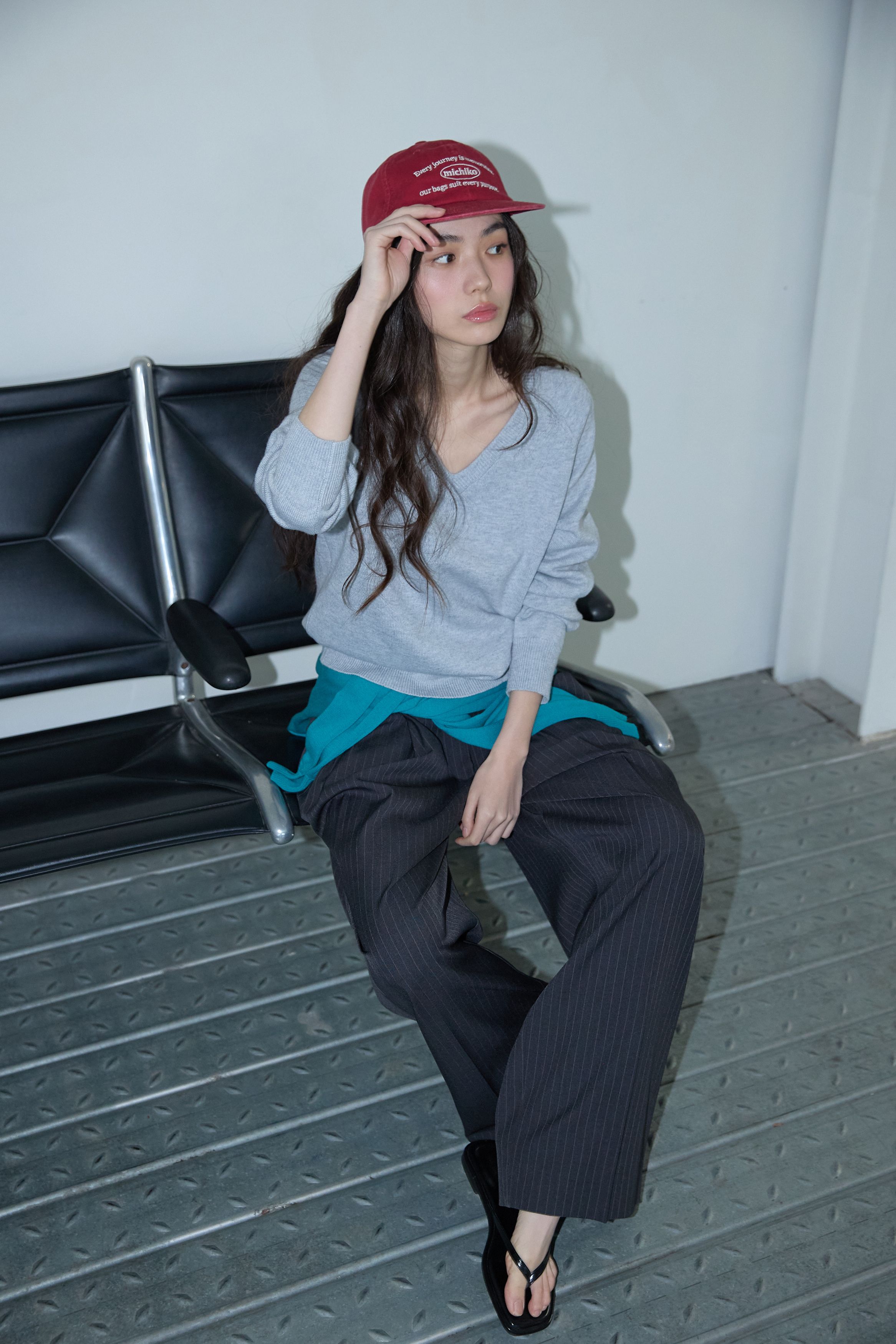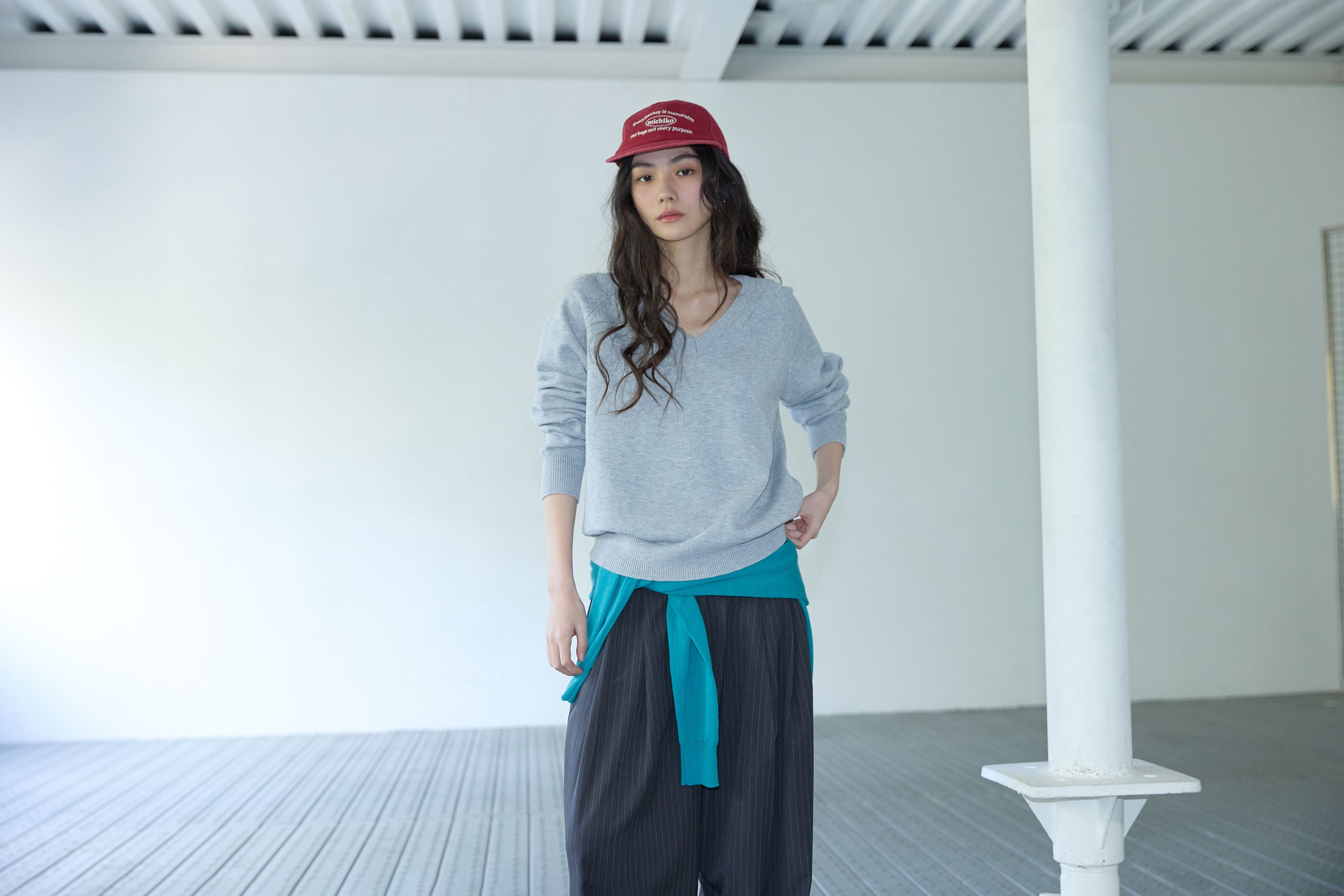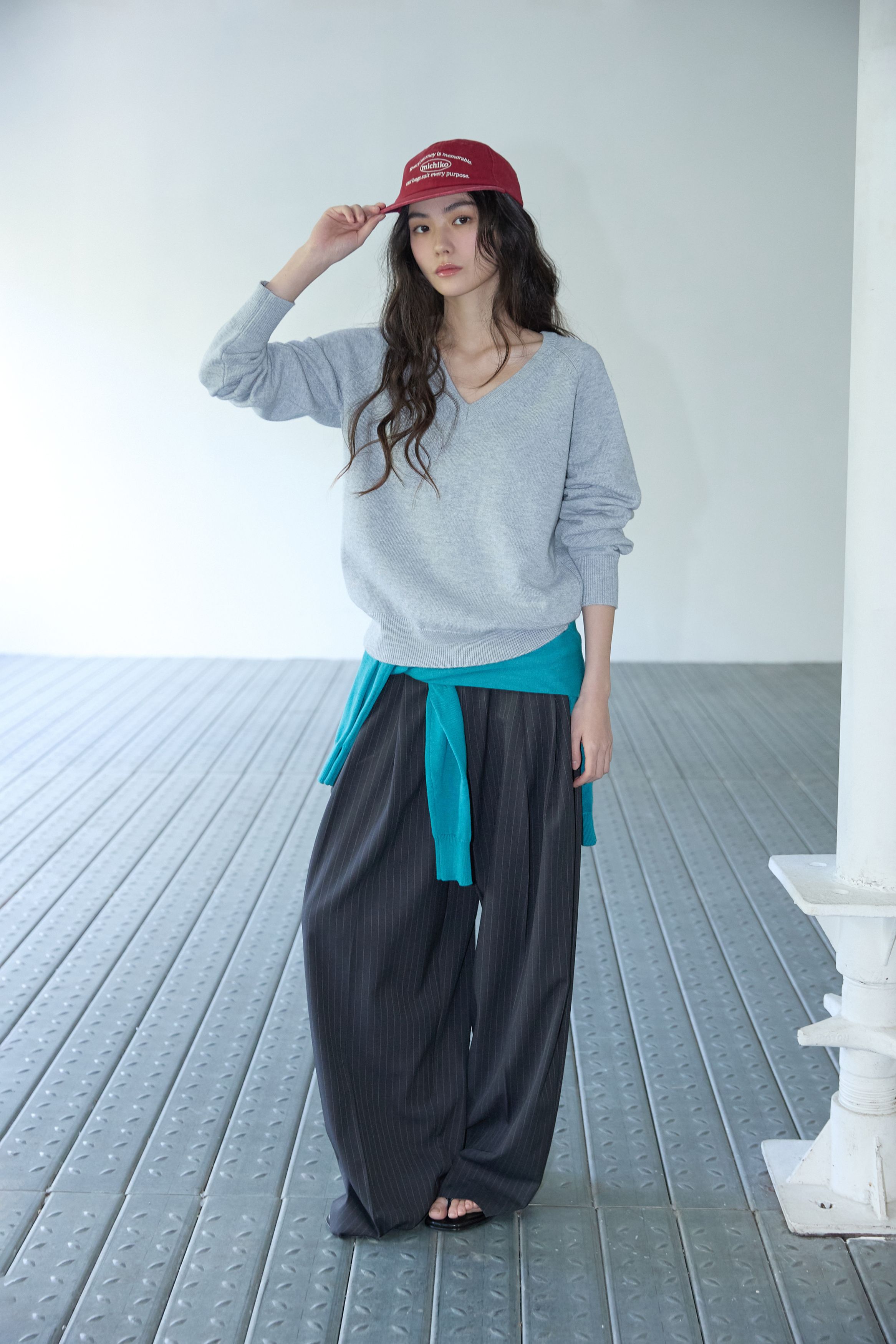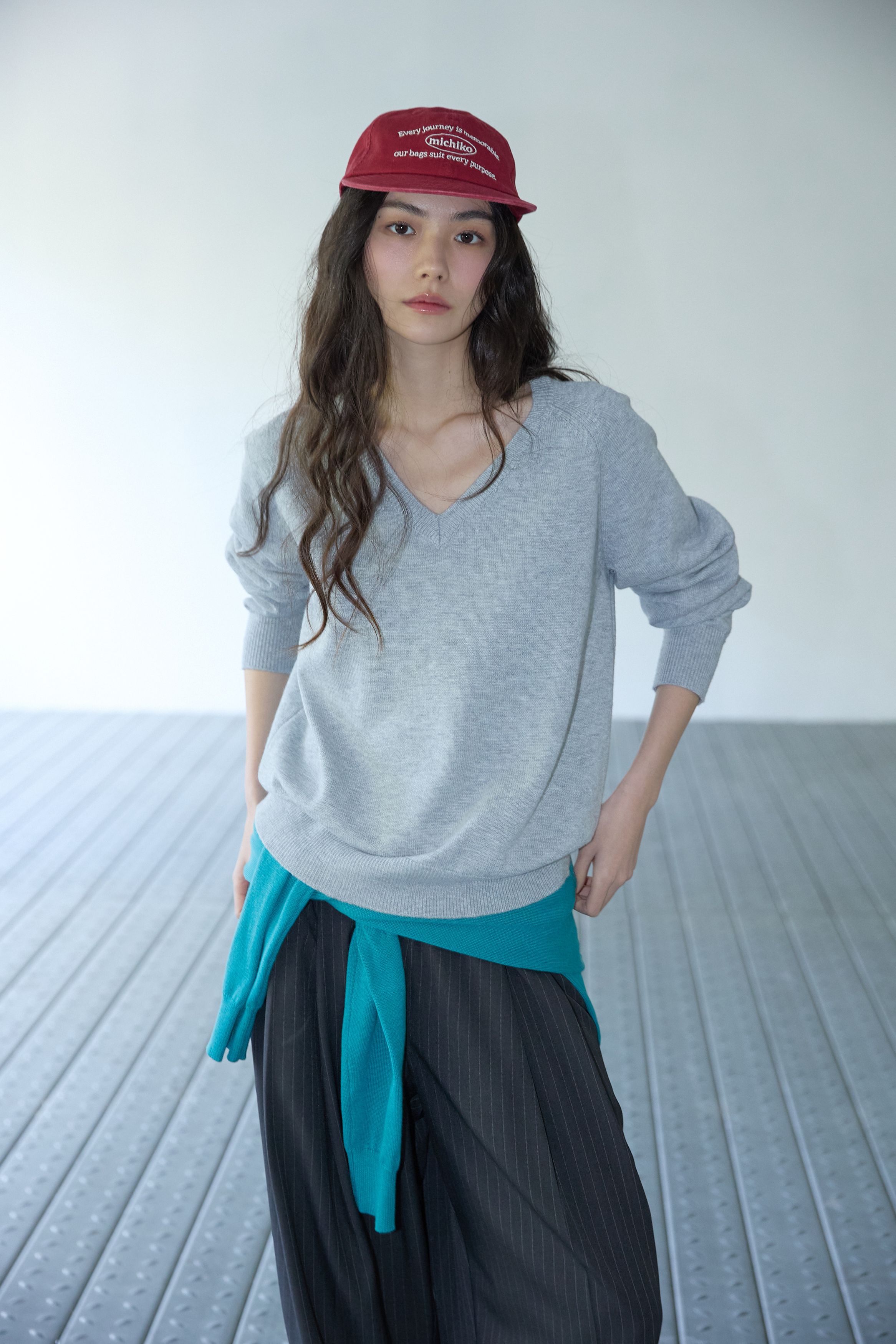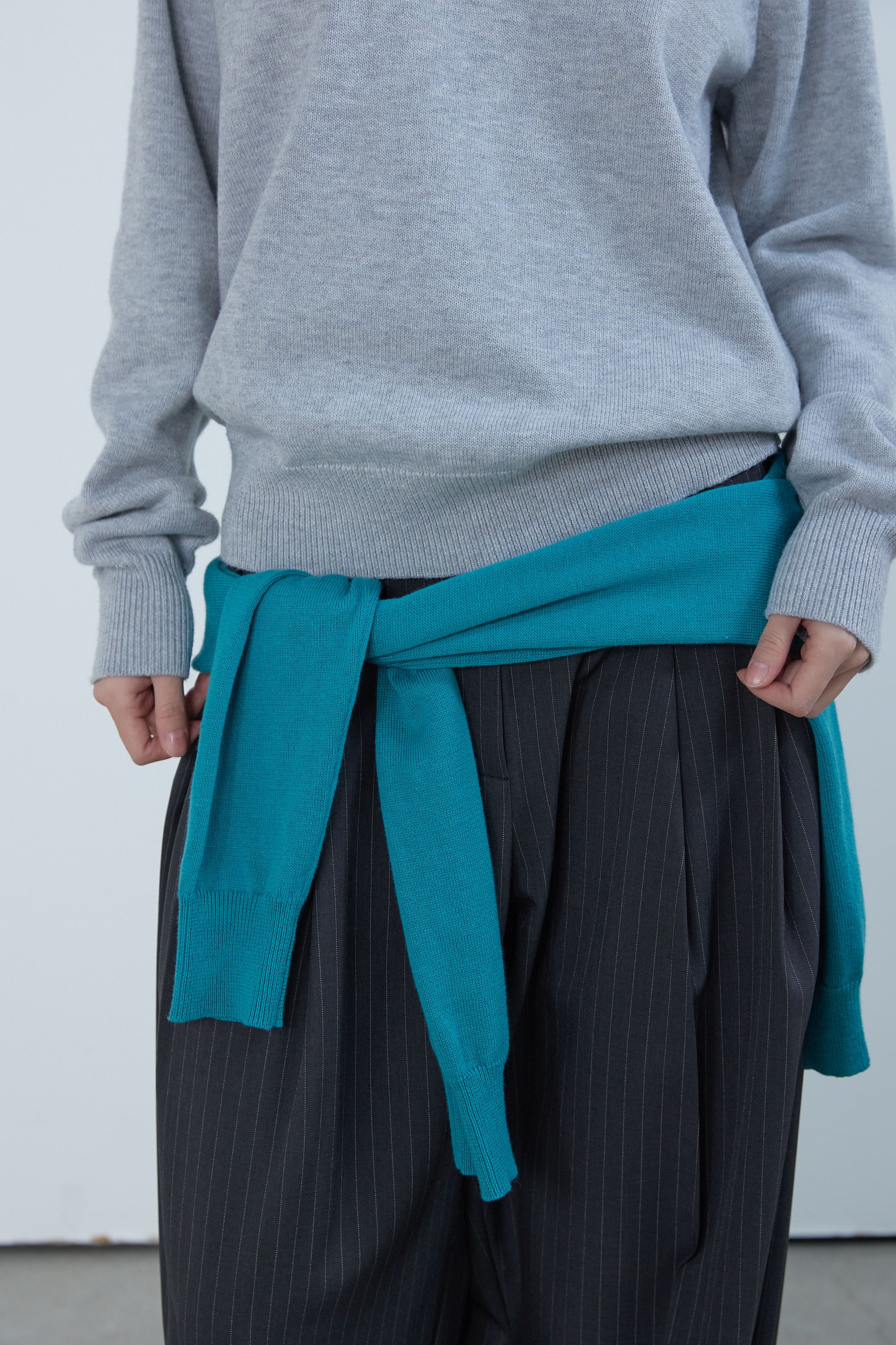 베이직 브이넥 울 니트 멜란지 그레이