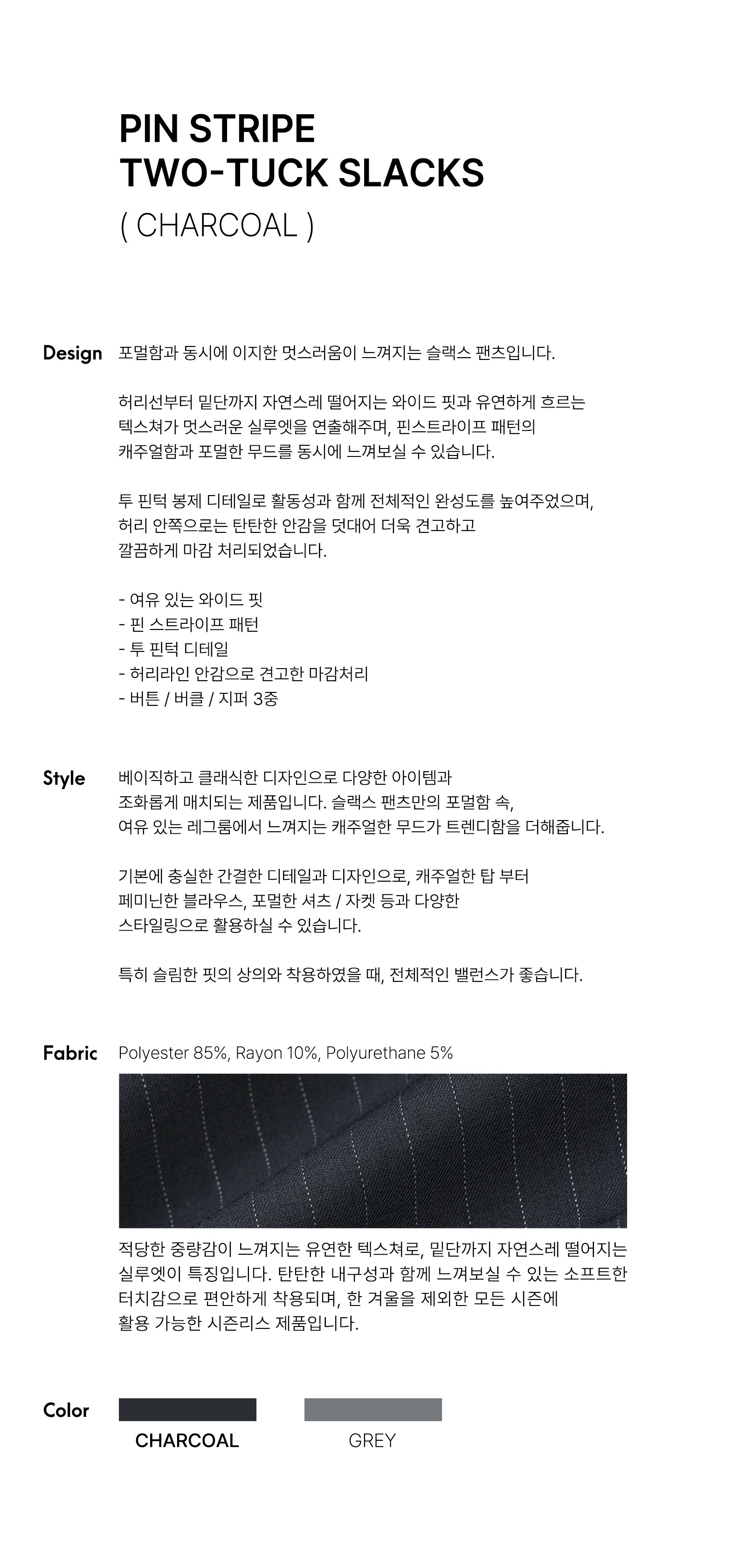 핀 스트라이프 투-턱 슬랙스 차콜