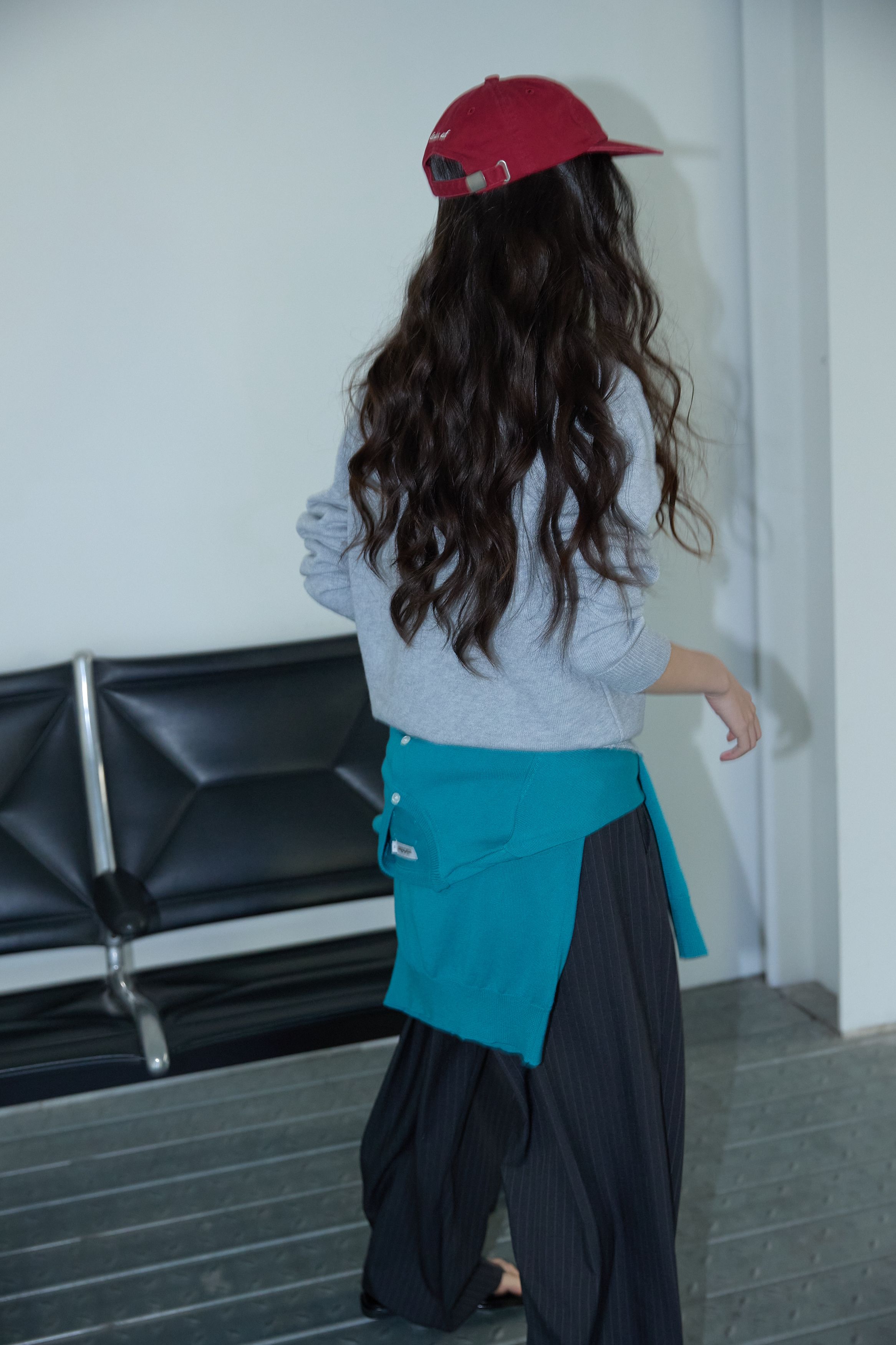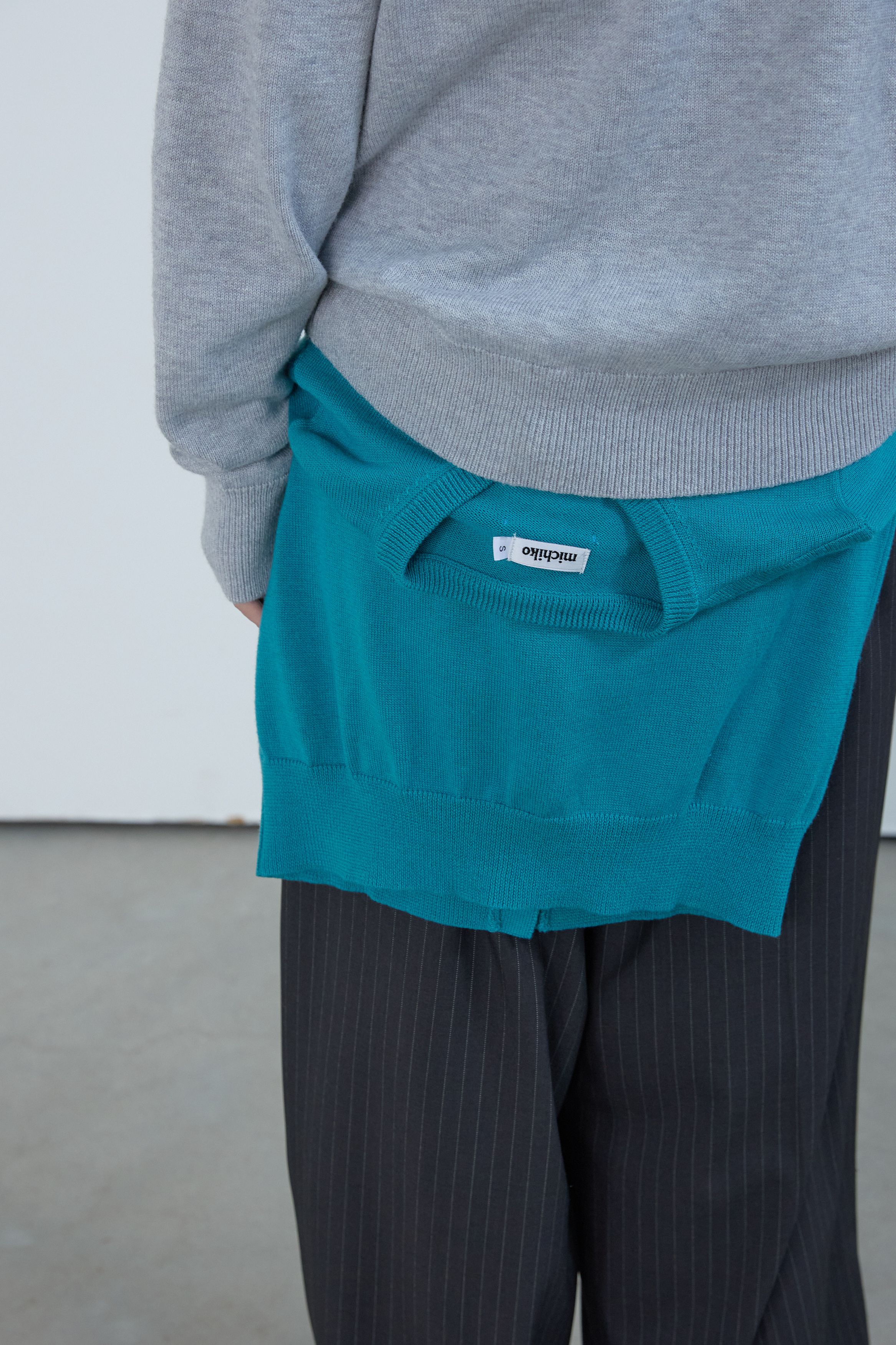 에센셜 라운드 니트 가디건 틸 블루