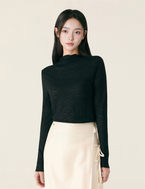 기모 물결 반하이넥 티셔츠_RMLWG11R02