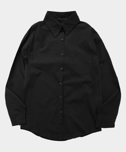 버튼업 단가라 레이어드 슬림 핏 롱슬리브 올데이 가디건 티셔츠 [블랙]