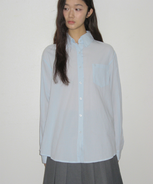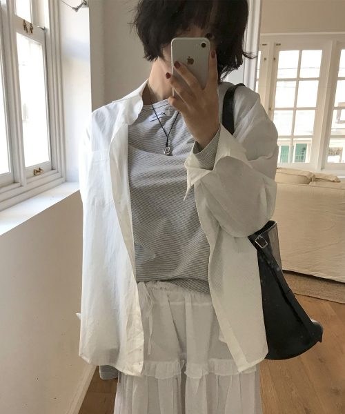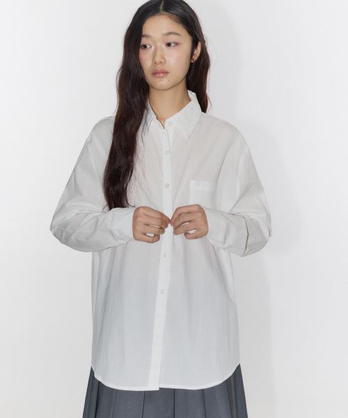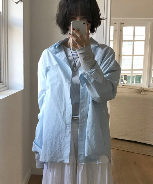 에센셜 스트라이프 빅 포켓 베이직 오버핏 플레인 코튼 긴팔 셔츠_ 3COLOR