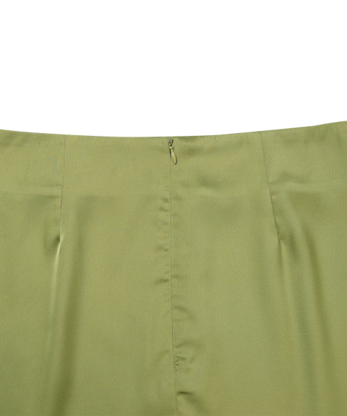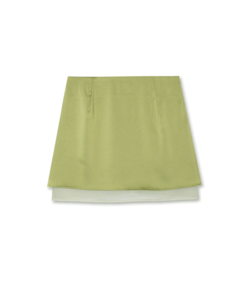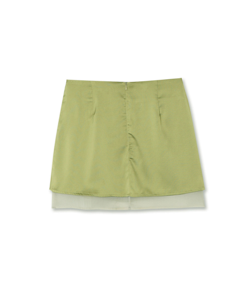 레이어드 새틴 미니 스커트 올리브 그린