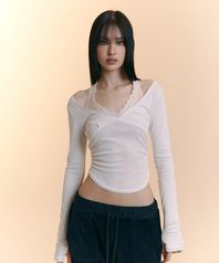 레이스 러플 가디건 세트 라일락
