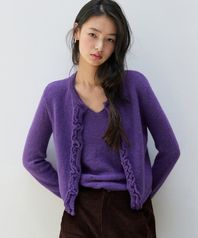 러플 울 니트 가디건 세트 바이올렛