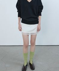 레이어드 새틴 미니 스커트 아이보리