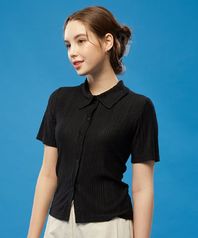WOMEN 미디 크롭 슬림 플리츠 반팔티 가디건 [BLACK] 반팔 크롭티