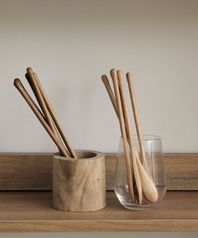라떼 티 커피 롱 우드 스푼