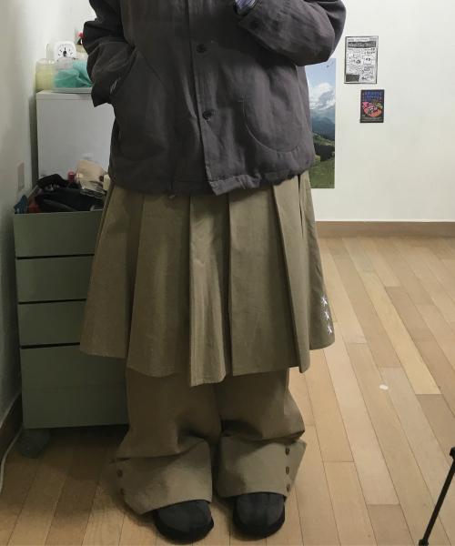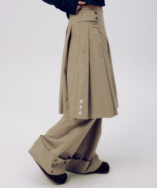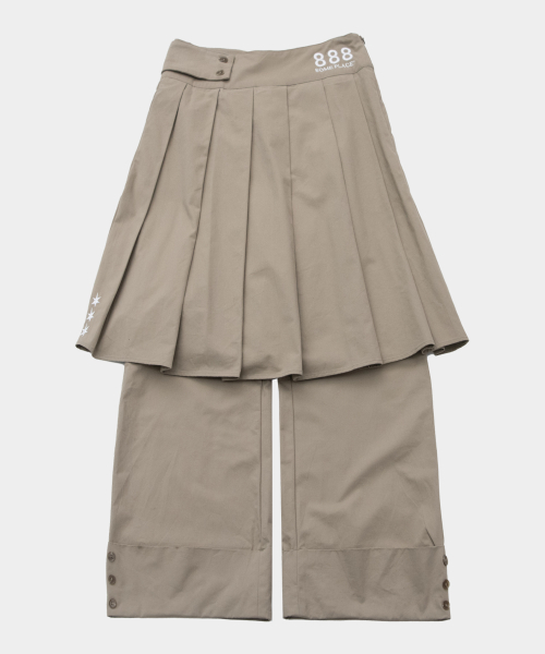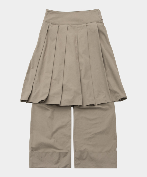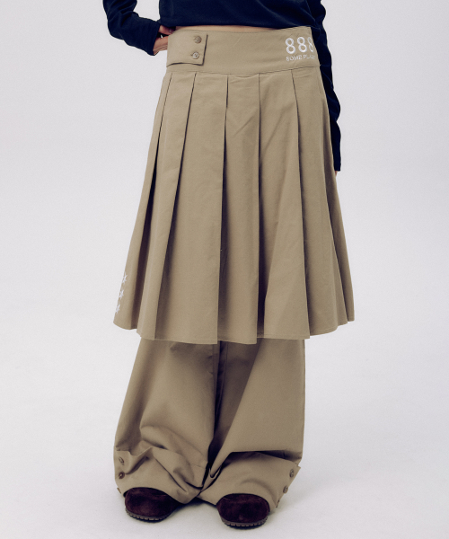 888 플리츠 미디 스커트 레이어드 스냅 롤업 와이드 투피스 세트 [베이지]