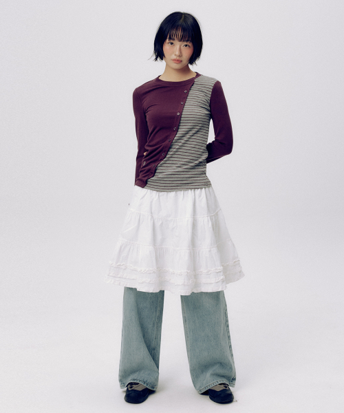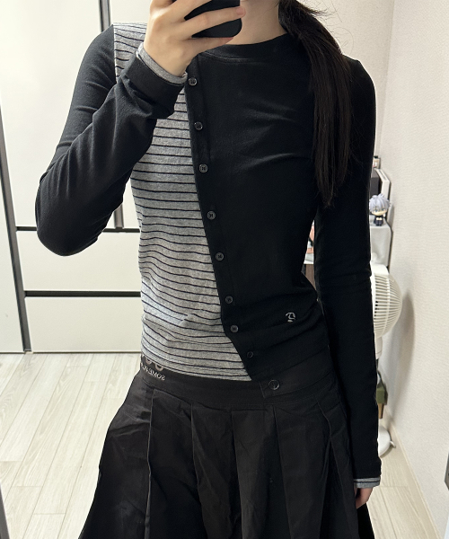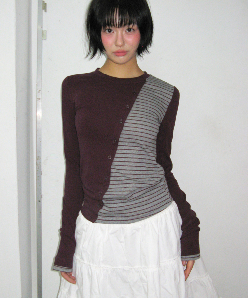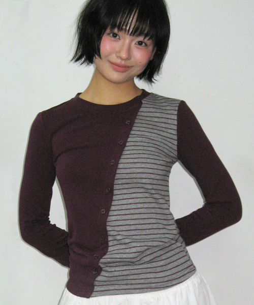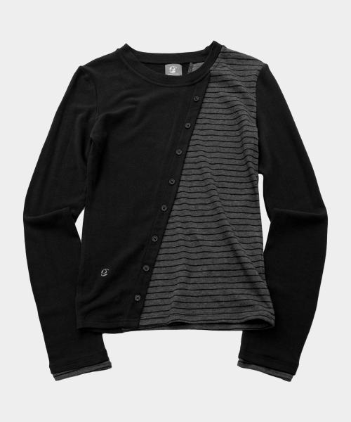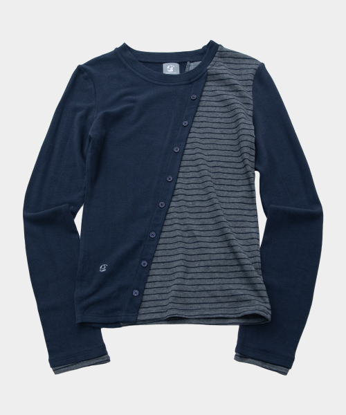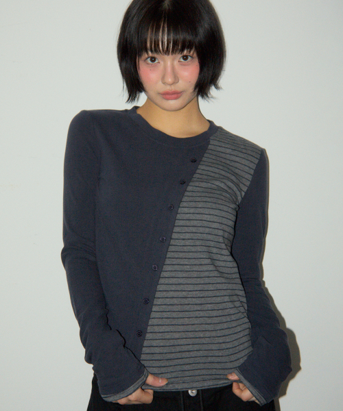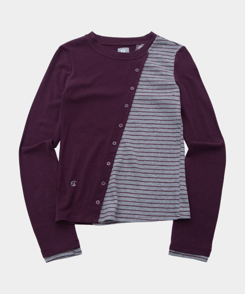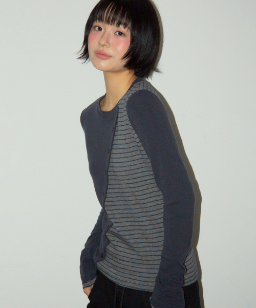 스트라이프 배색 사선 더블 스냅 포인트 롱 슬리브 긴팔 티셔츠 _ 3COLOR