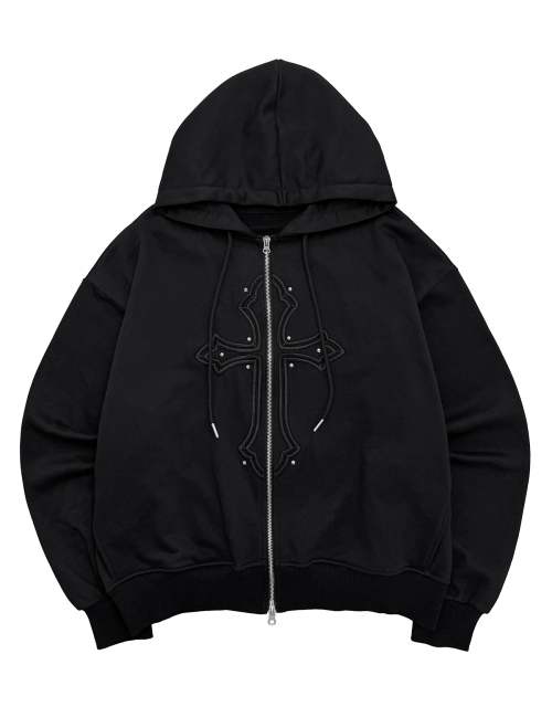 크로스 자수 밴딩 핀턱 와이드 롱팬츠 블랙