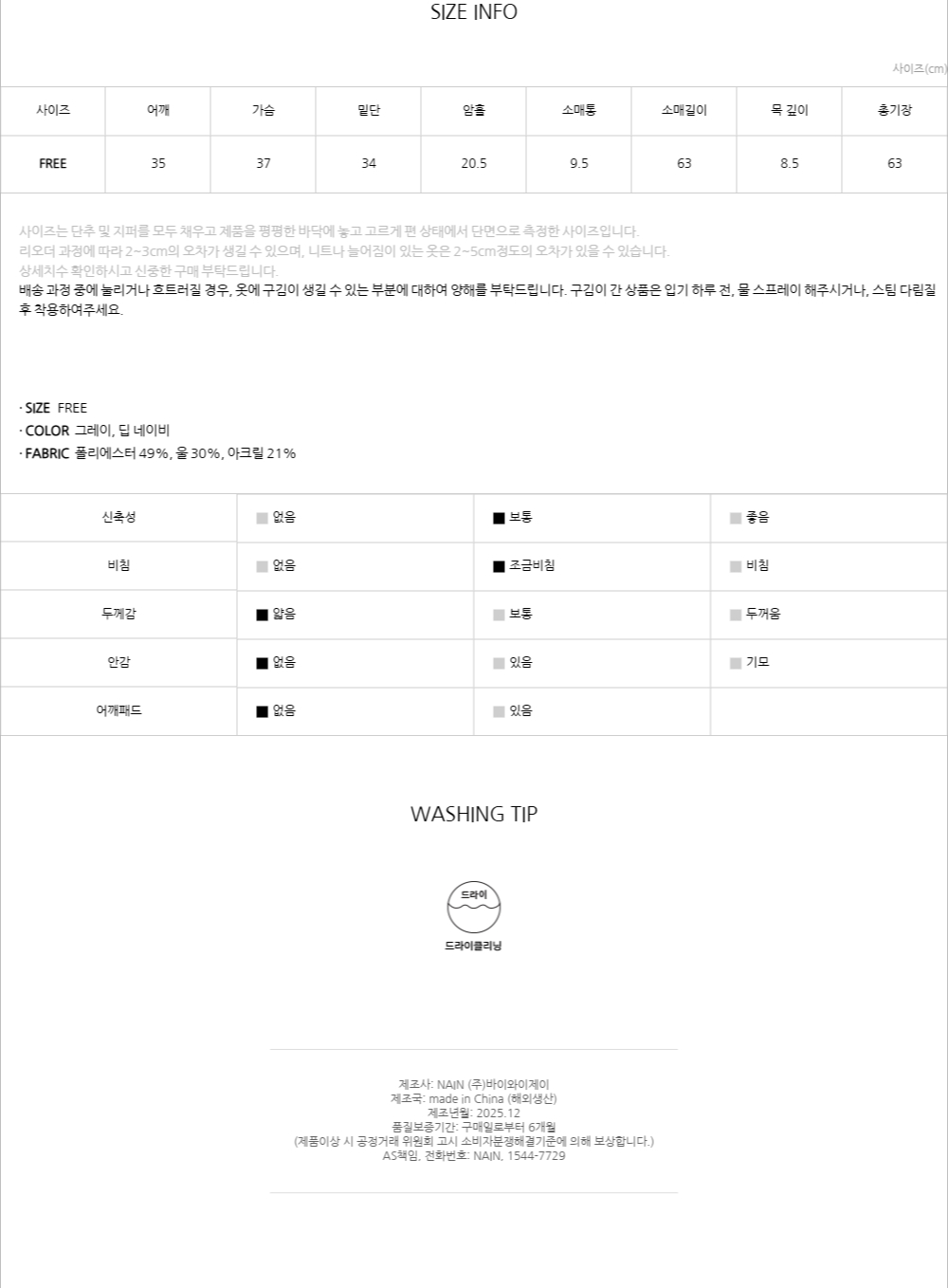 가벼운 두께감으로 이너로 활용하기 좋으며, 은은한 비침이 세련된 포인트를 더합니다.