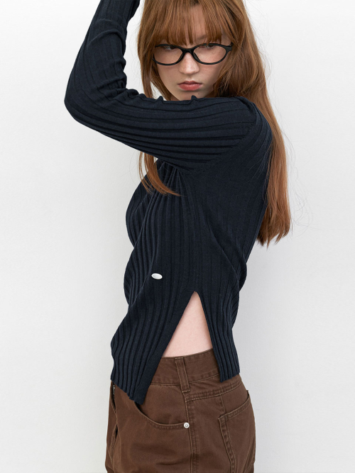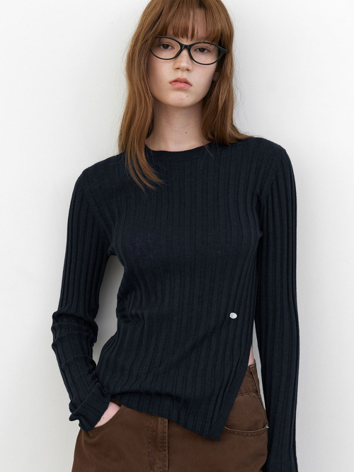 시스루 골지 조직으로 슬림하게 떨어지는 니트탑입니다.
