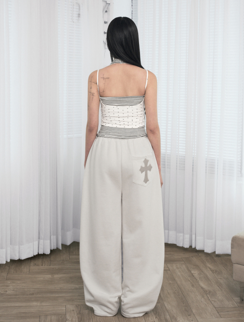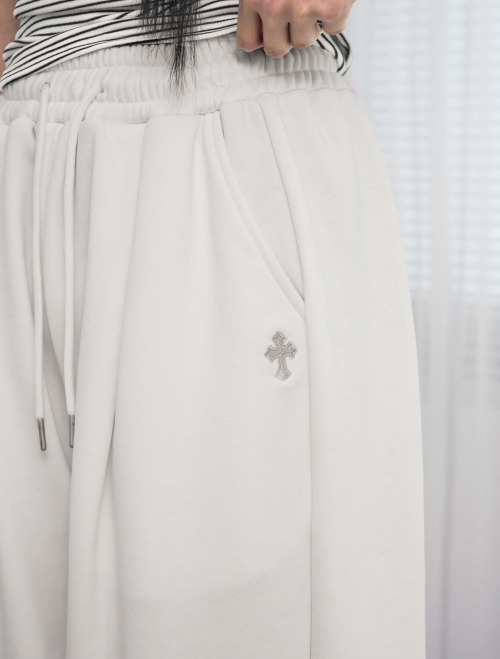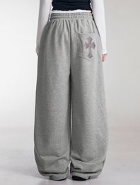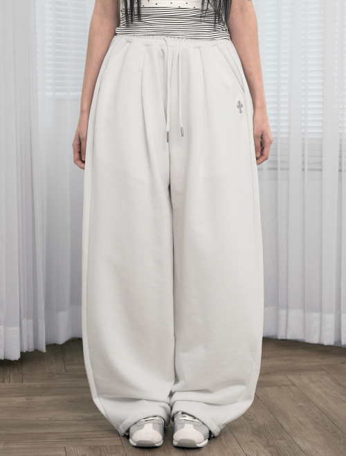 엔젤 아플리케 커브드 스웨트 팬츠[그레이]