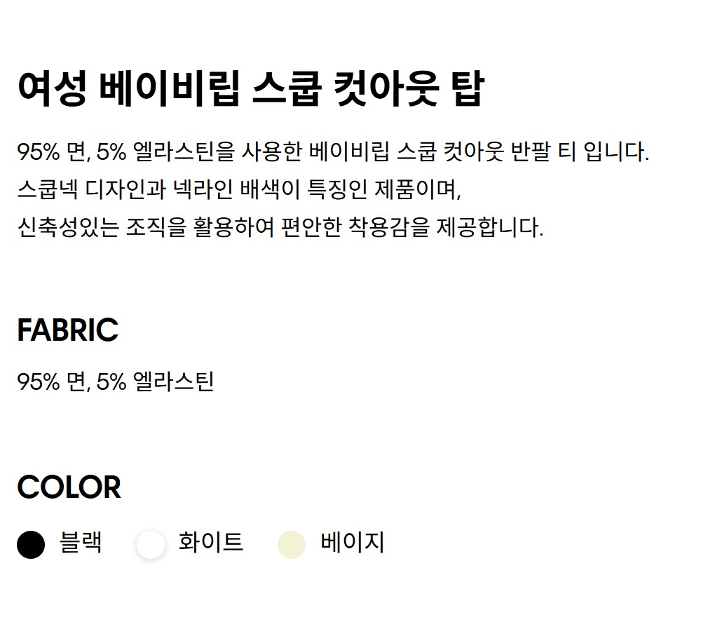 여성 베이비립 스쿱 컷아웃 탑 반팔 티셔츠 47F247G YAF